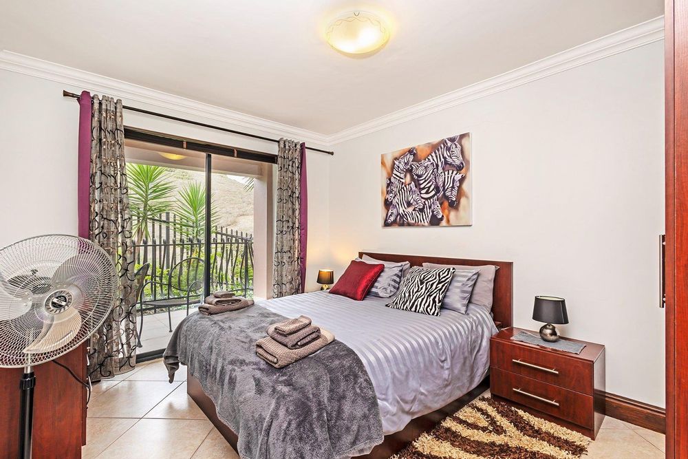 Apartment 4: Ground floor with a balcony, 1 king-size bedroom, 1 queen-size bedroom, lounge, kitchen, bathroom, braai facility, and magnificent mountain views.