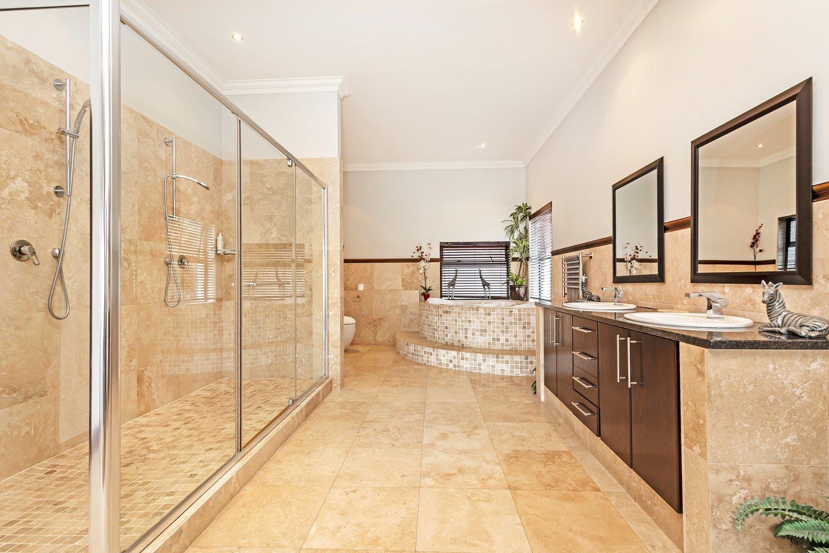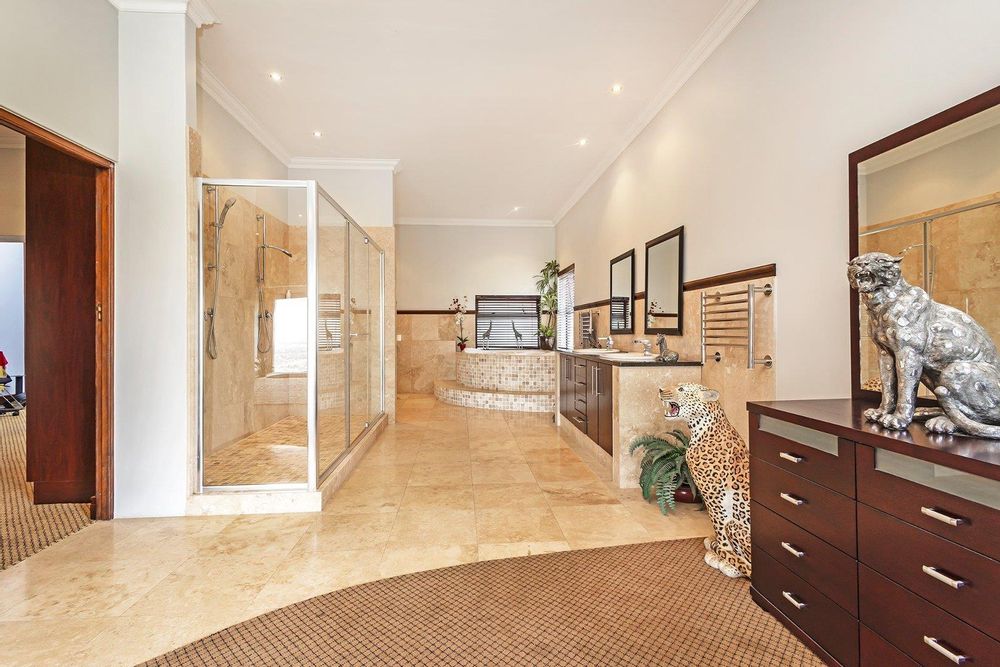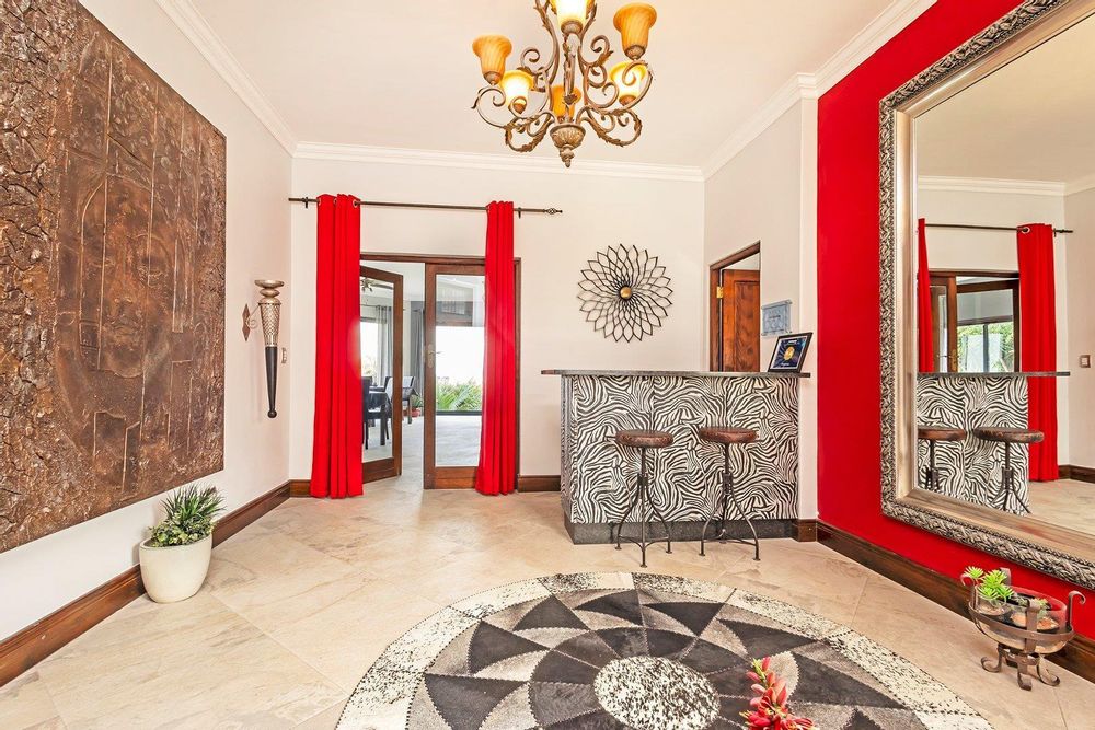 Opulent Main House: Enter a world of refined elegance with a meticulously designed interior, complete with a wine cellar for connoisseurs, and an indoor braai with a pizza oven for entertaining in style. The tea/coffee room offers stunning views and direct access to the garden and heated pool, perfect for intimate gatherings.