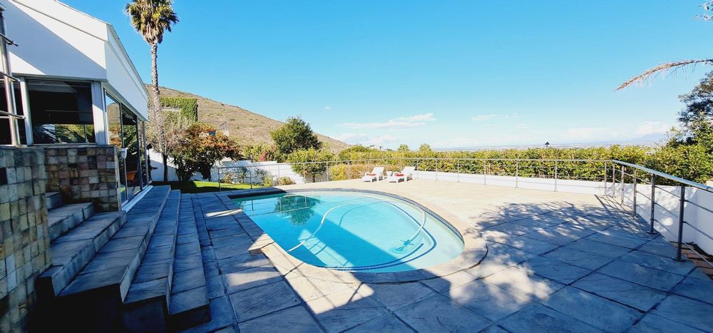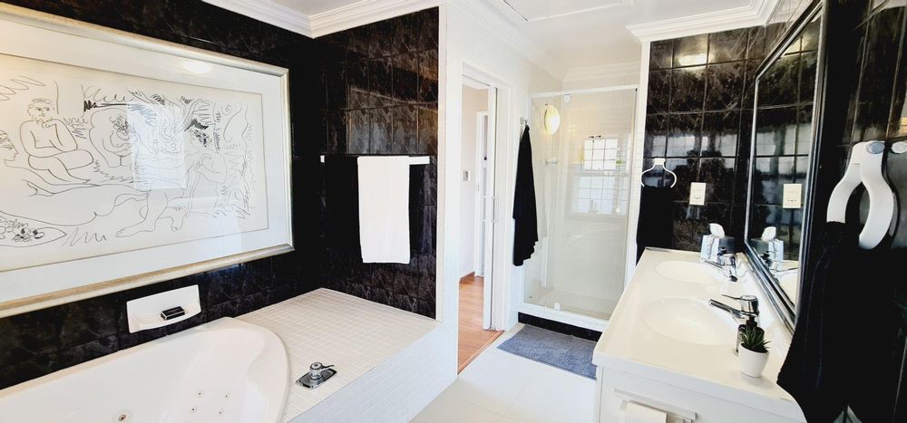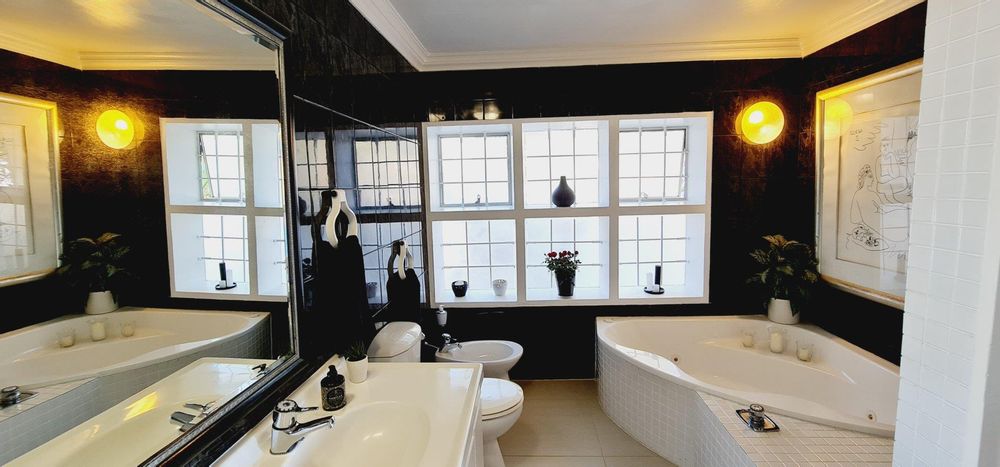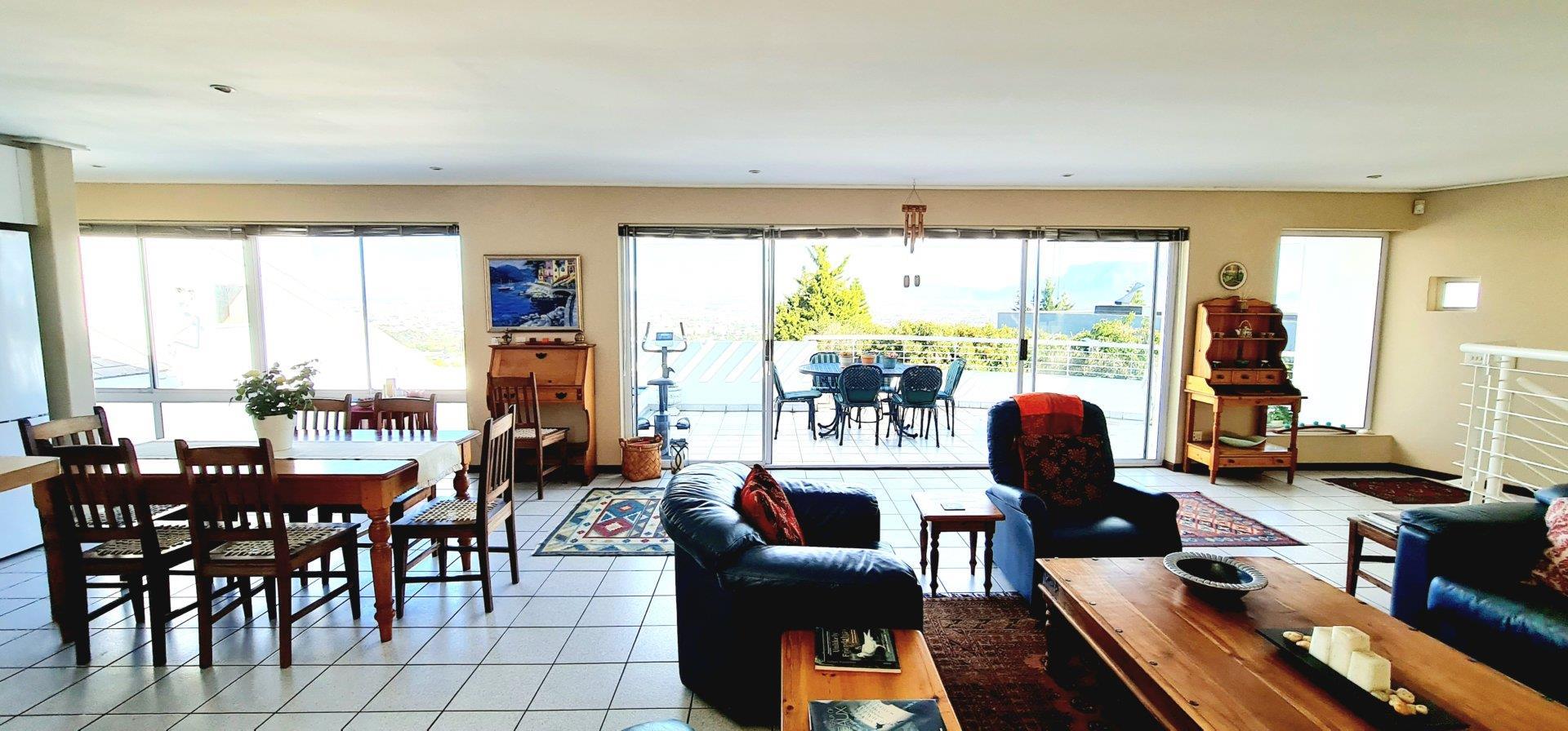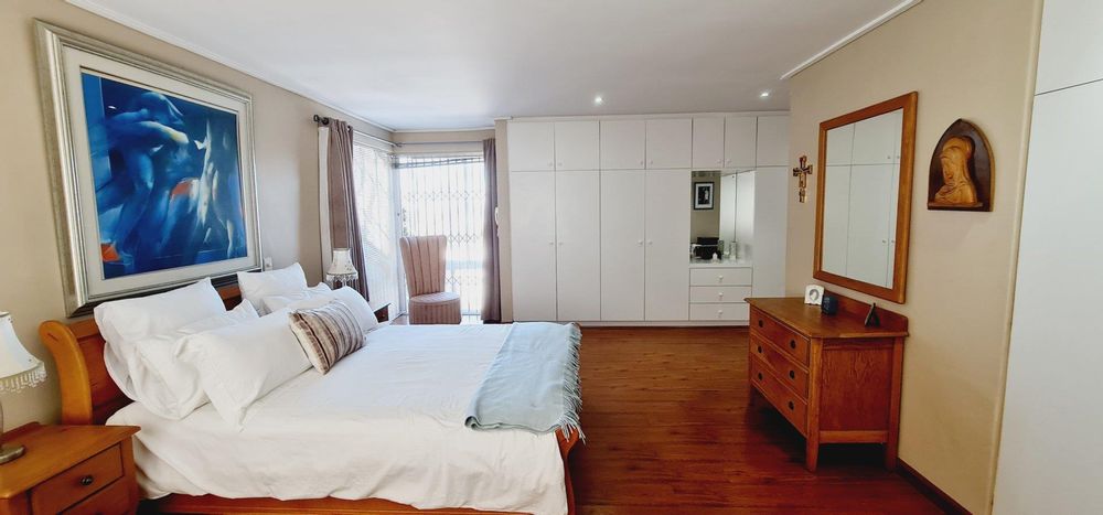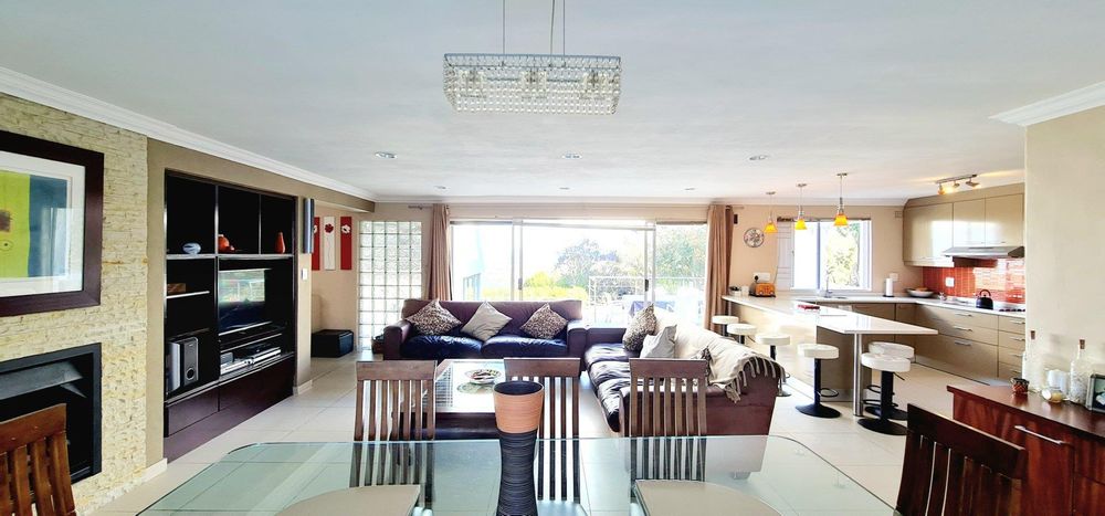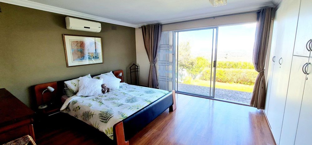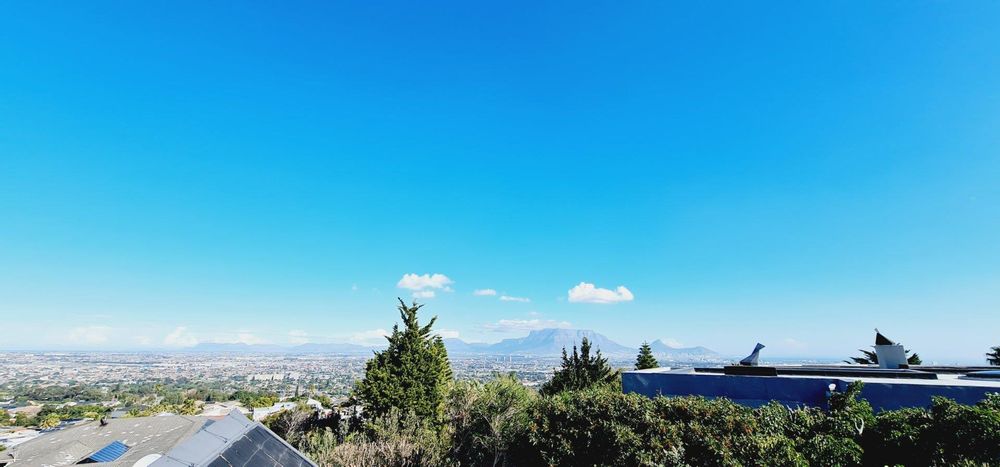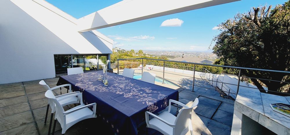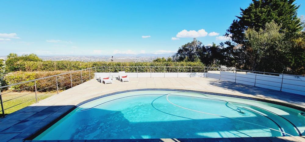 This exquisite, one-of-a-kind six-bedroom residence offers breathtaking panoramic views of Table Mountain and the sea. Situated on an expansive plot, High up in Plattekloof, it features two distinct dwellings and four garages, making it perfect for dual-family living or rental income opportunities like Airbnb.