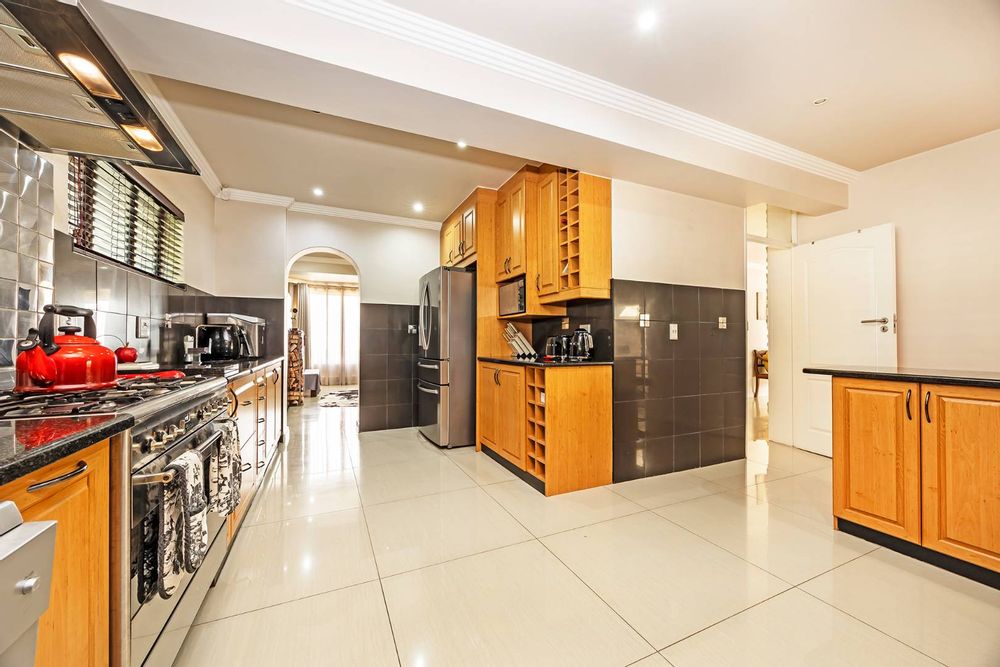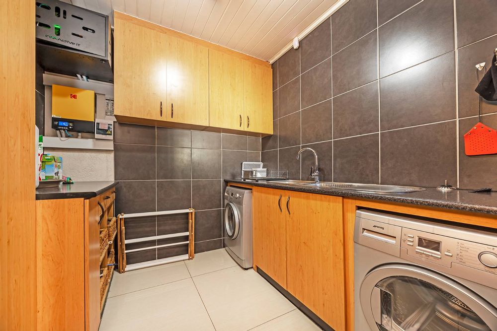 Outside, an entertainer's paradise awaits, with a braai area overlooking a sparkling pool, set in a secure, enclosed garden. This home is equipped with a state-of-the-art inverter system, ensuring peace of mind during power outages, and offers secure parking behind closed gates for up to six cars, including an immaculate tiled garage. Wine enthusiasts will be delighted by the exclusive wine cellar.