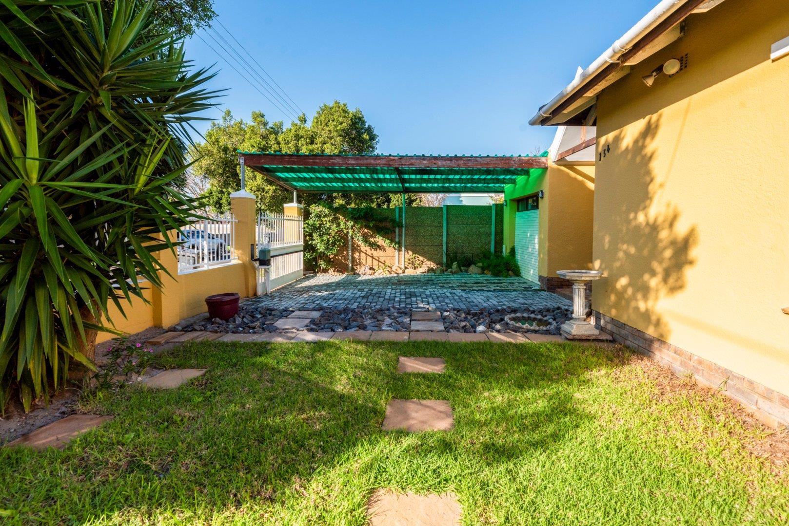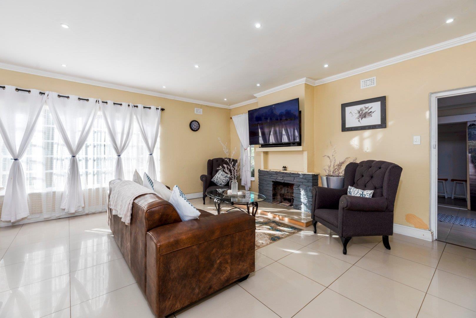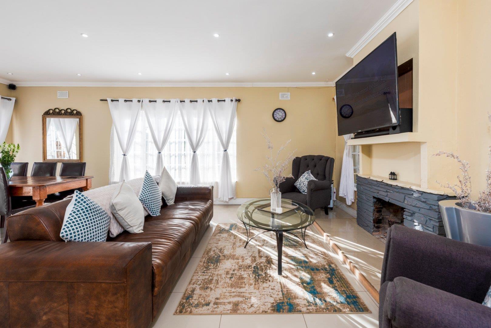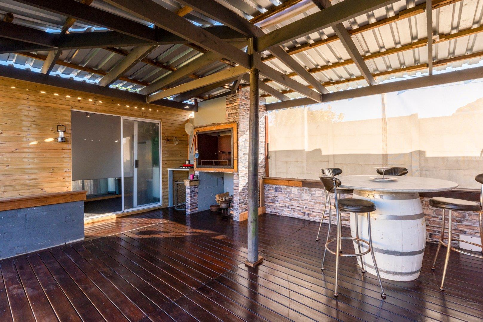 This home boasts four comfortable bedrooms, including a luxurious main bedroom with a spacious ensuite, built-in cupboards, and a dressing room. The additional three bedrooms are serviced by a well-appointed, recently renovated bathroom, and there's also a convenient guest toilet. The open-plan, fully tiled lounge and dining area, complete with a cozy fireplace, create the perfect space for family gatherings and cozy evenings. The open-plan kitchen features built-in cupboards, an electric stove, and an oven. This property offers a seamless flow, with every exit leading you to the entertainment area.