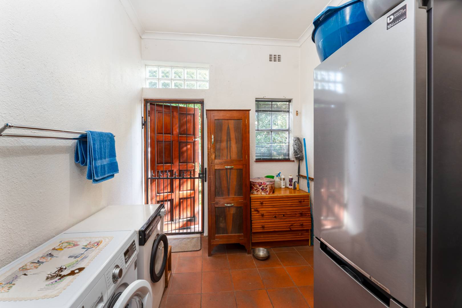 The open-plan dining area creates a wonderful space for family meals and entertaining, while the kitchen, though compact, offers ample cupboard space, is plumbed for a dishwasher, and is designed for easy, practical living. A separate laundry room adds to the home’s functionality.