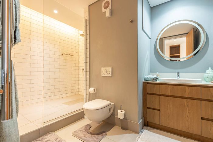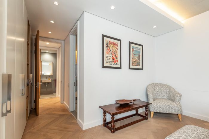 Top-floor apartment with panoramic views, set in Marlborough Park's landscaped gardens with pool and braai — short walk to Cavendish Square and medical facilities. Two bedrooms, two en-suites, garage.