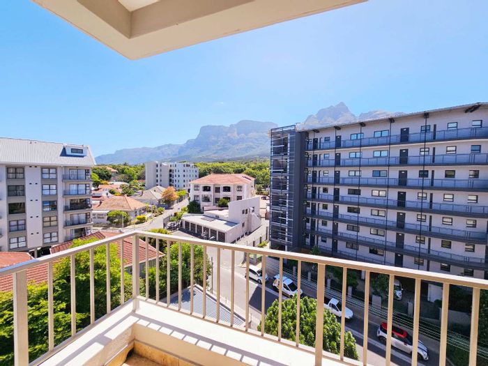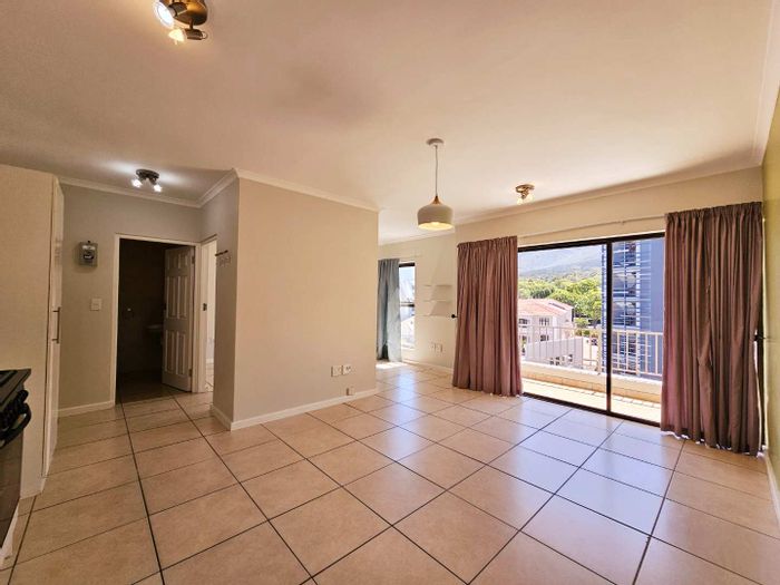 Live tranquilly in Rondebosch with sweeping mountain views from the balcony, open-plan kitchen/living, 24-hour manned security and secure parking — one bed, one bath.