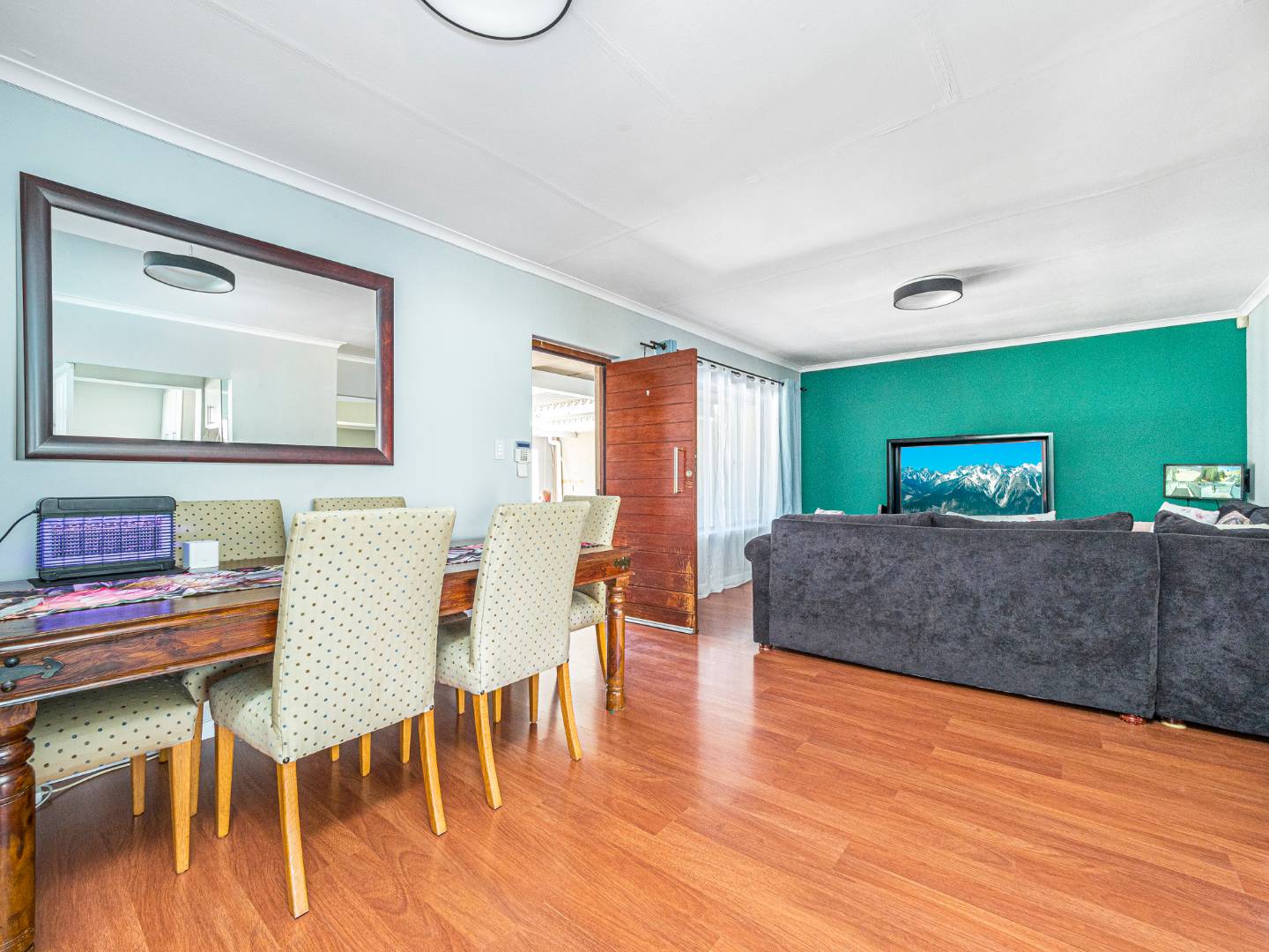 The lounge and dining areas are all open plan. Fitted with laminated floors.