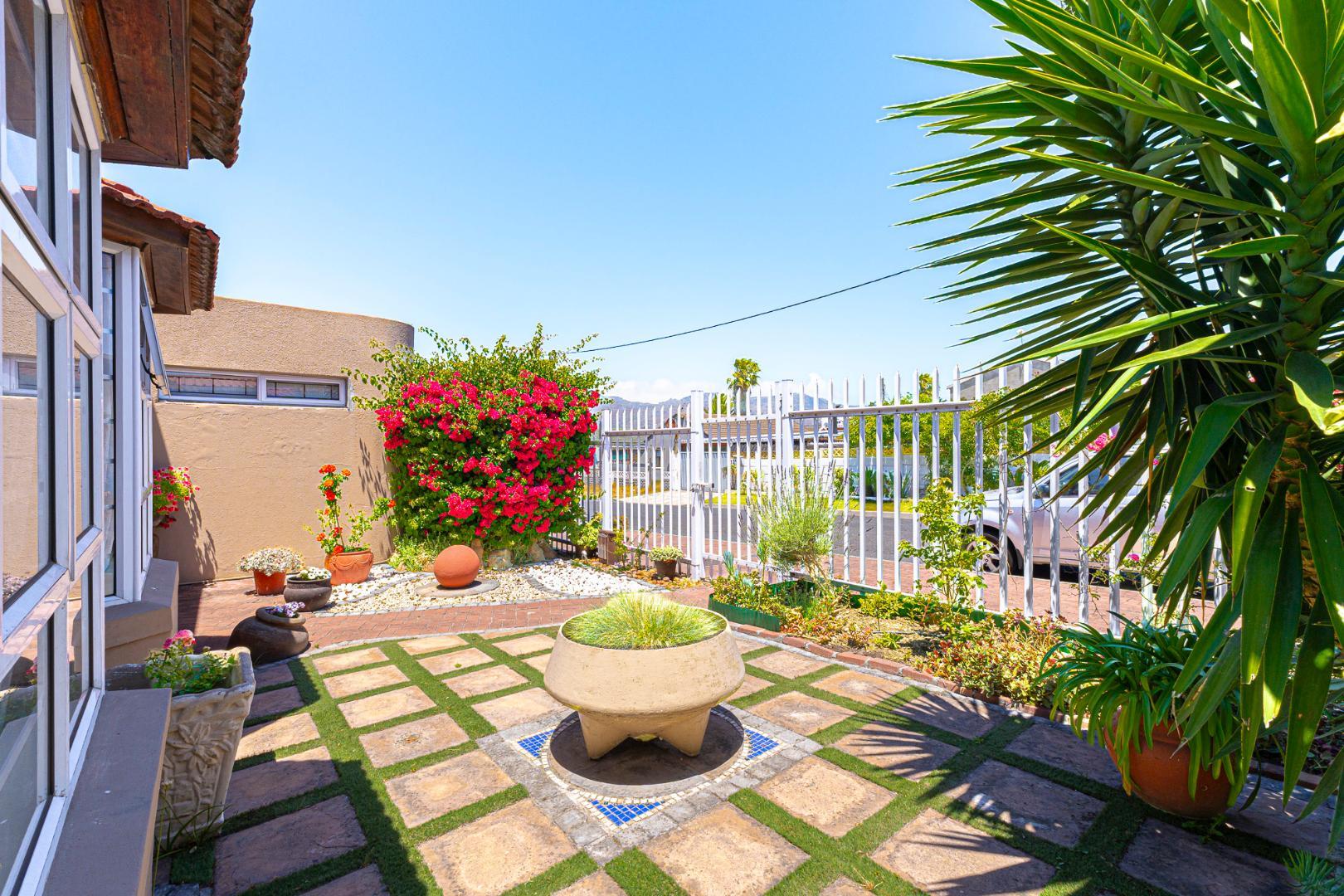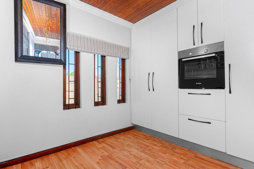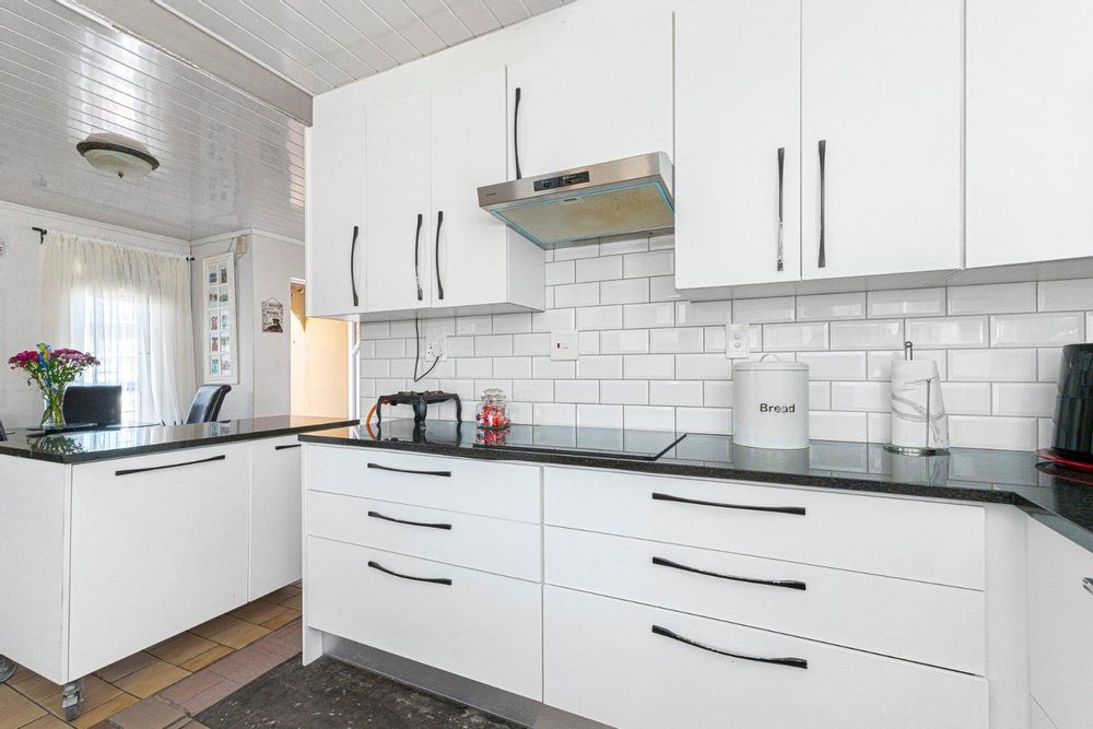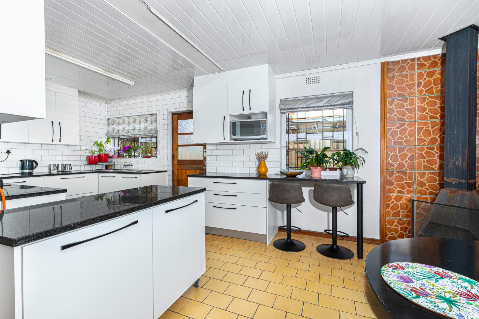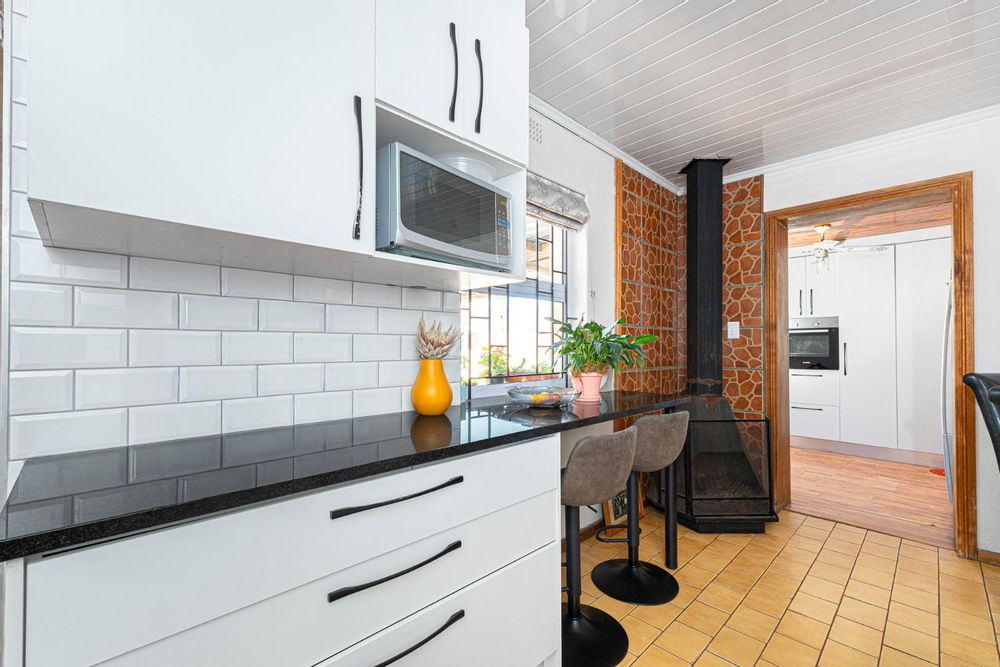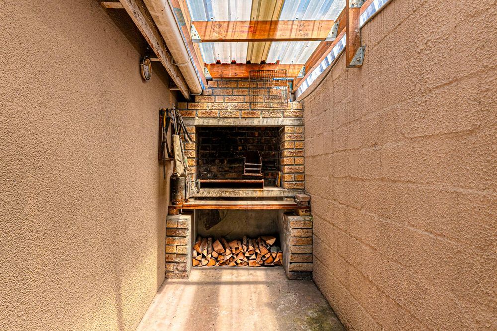 Step inside to a bright and airy living space that flows seamlessly into a neat, modern kitchen. The kitchen features granite countertops, ample cupboard space, quality finishes, a stove with extractor fan and generous natural light. The open-plan dining area and sunken lounge overlook the private back garden, complete with an undercover braai and entertainment area—perfect for relaxed gatherings.