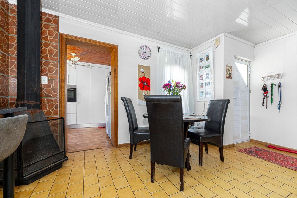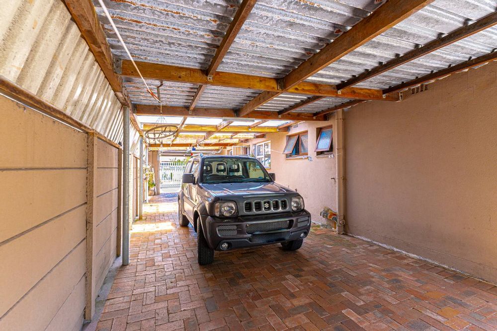 Additional features include a single garage with a laundry area, parking for up to four cars under a carport behind a motorised gate, laminate flooring in the bedrooms, a breakfast nook, prepaid electricity, an alarm system, aluminium windows, a JoJo tank and fibre-ready connectivity.