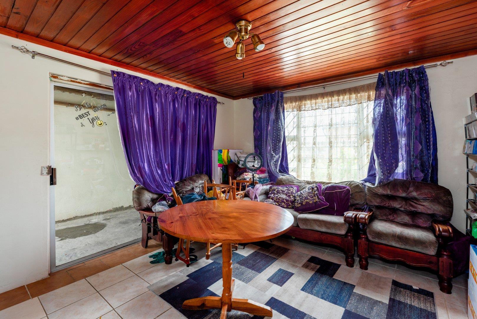 This three-bedroom semi-detached property is conveniently located behind Eisleben Primary School and offers great potential for transformation according to your preferences. The lounge features aluminum windows and a unique nottypine ceiling, with a sliding door that leads to the garage where two vehicles can be parked.