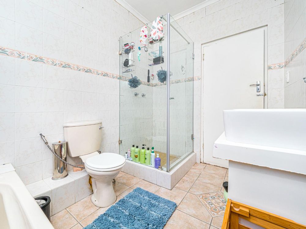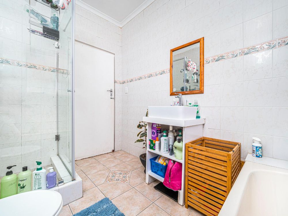 The spacious bathroom has a bath as well as a separate shower. It's fully tiled.
