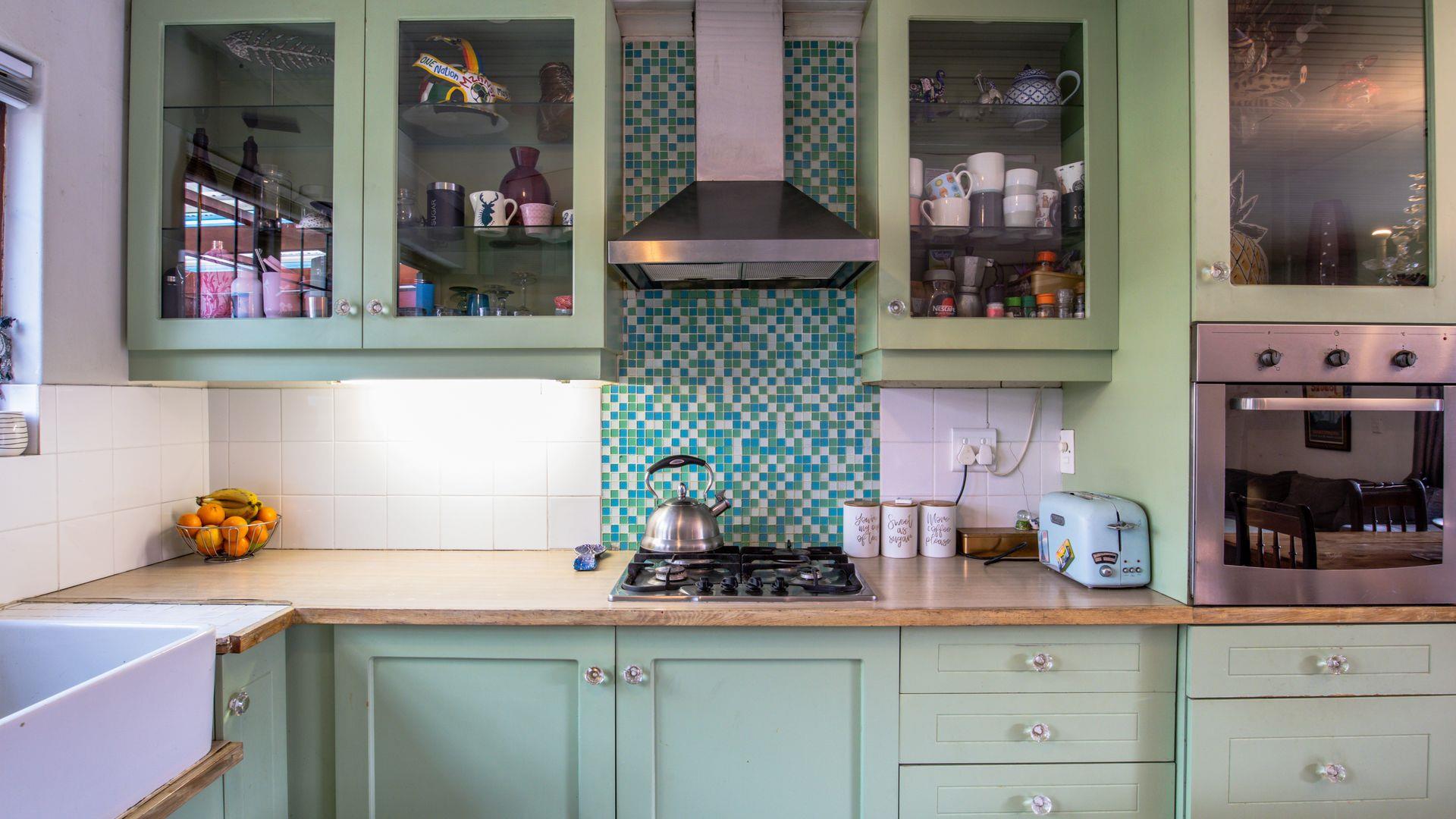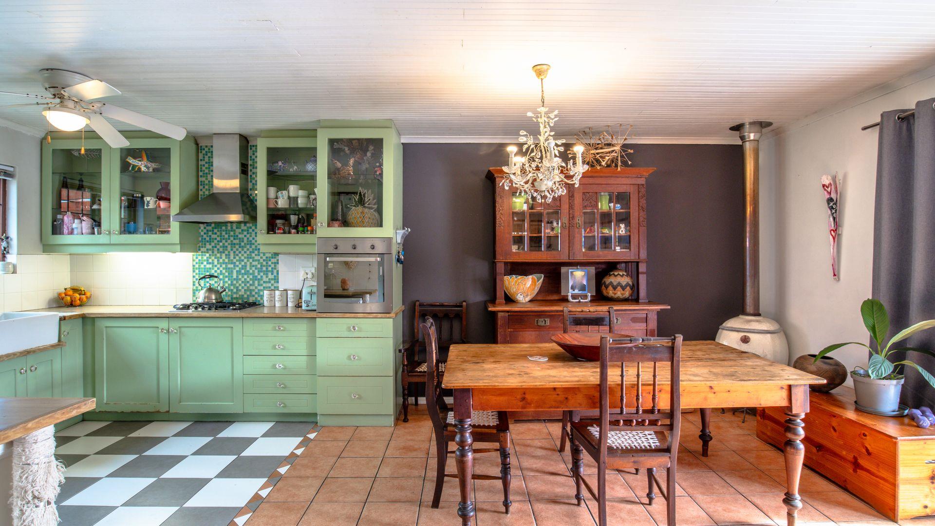 Spacious kitchen with beautiful fitted cupboards and space for plumbing.