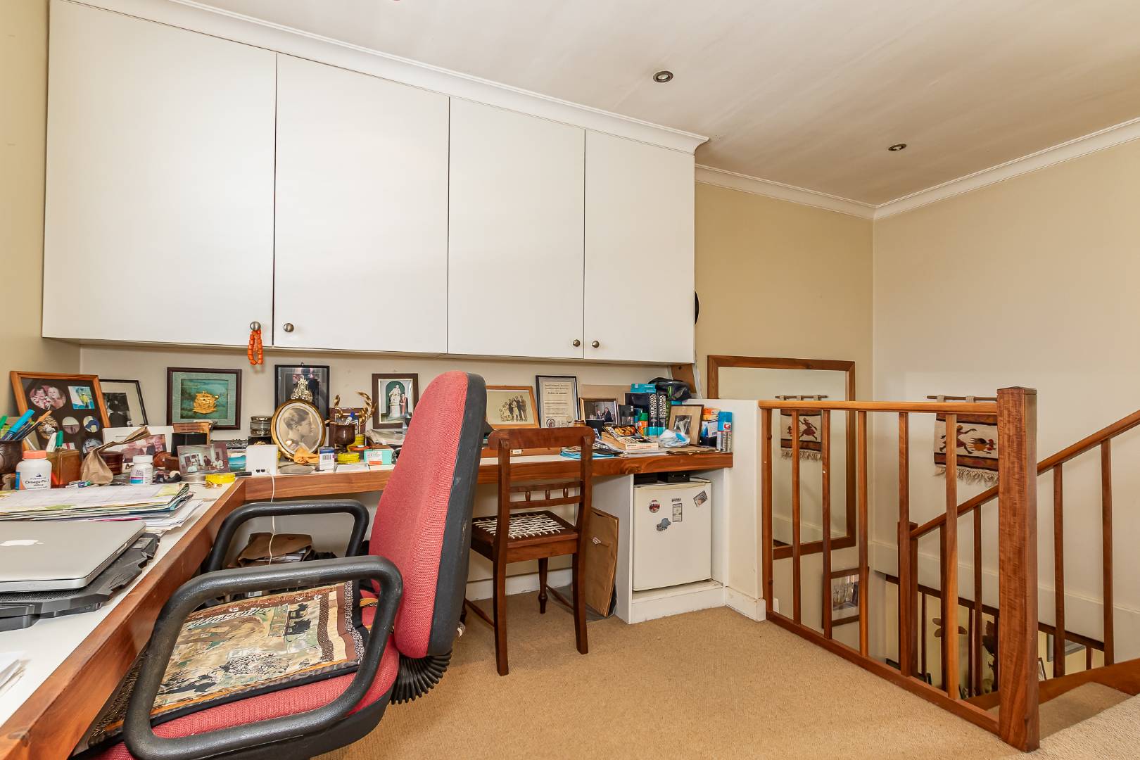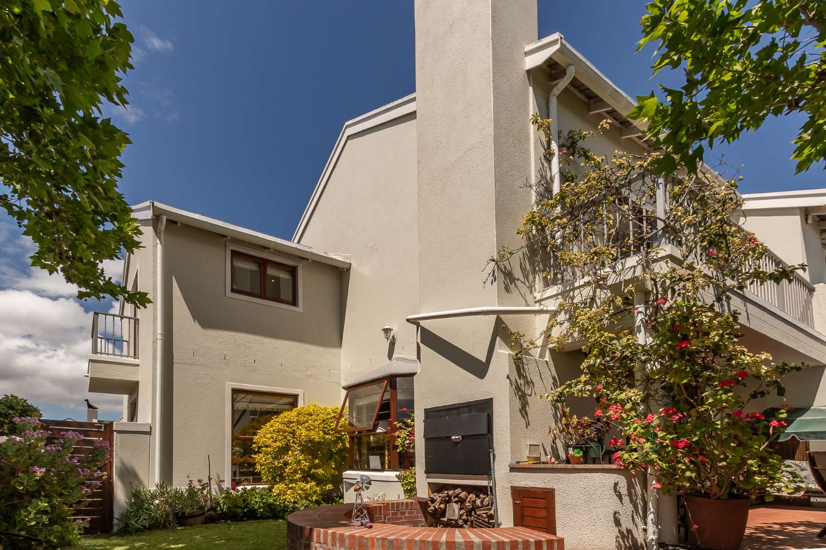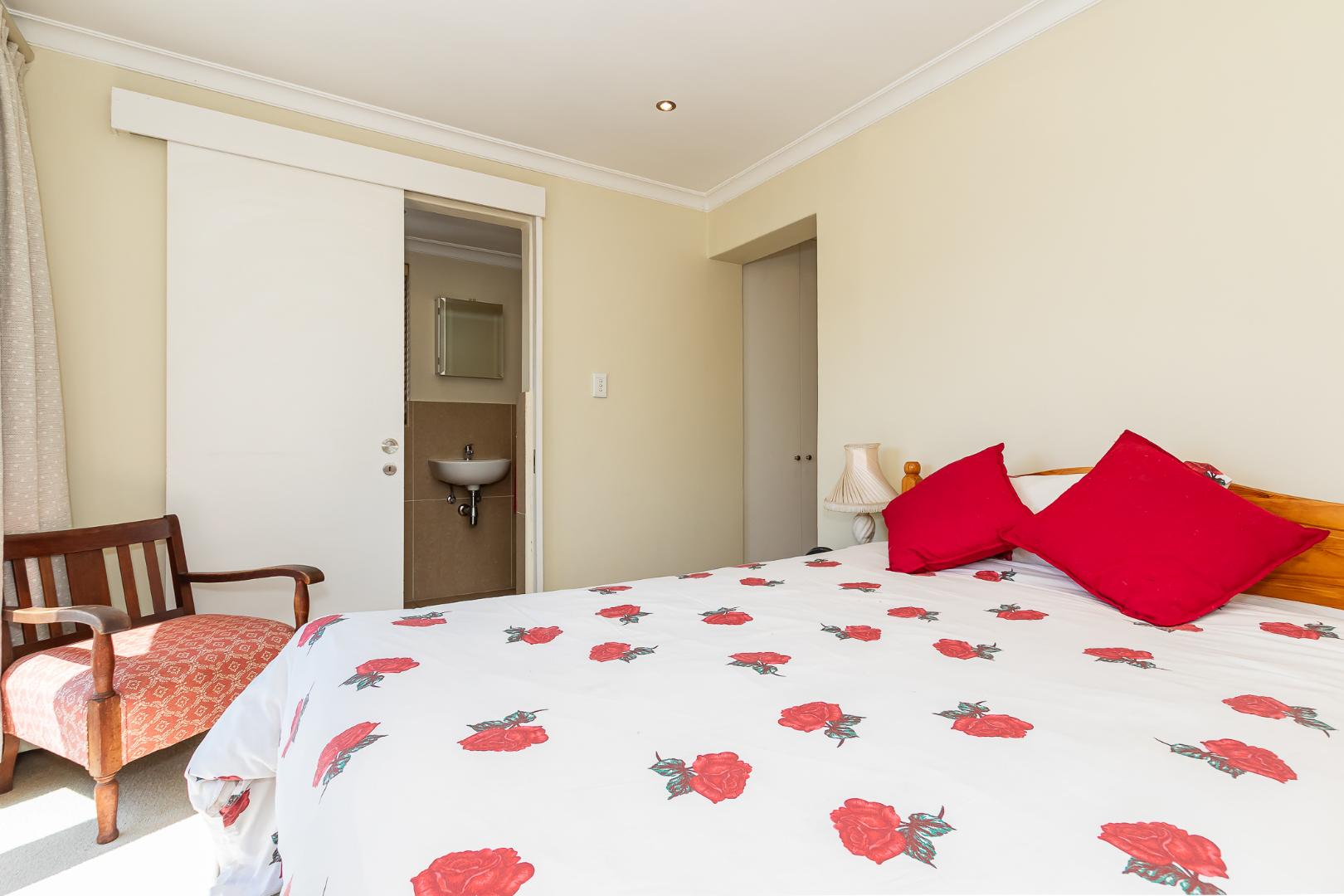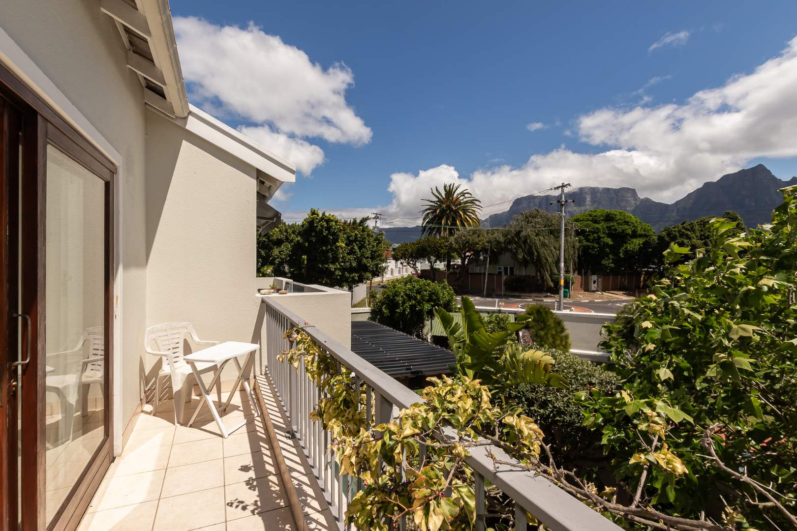 Upstairs, you'll find two additional ensuite bedrooms, each thoughtfully designed for privacy and comfort. The main bedroom opens onto a north-facing balcony with breathtaking views of Table Mountain, creating a tranquil retreat to start or end your day. A study at the top of the stairs is perfect for working from home.