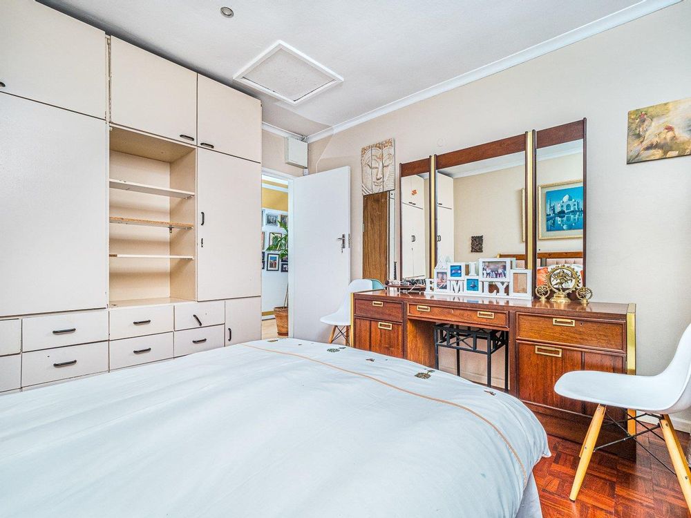 A very solid and well-loved family home has loads to offer. Be greeted by a low maintenance leafy garden that gives this home great kerb appeal. The tiled entrance way leads to a spacious lounge/dining area. The huge windows in the lounge and dining area lets you take in the awesomeness of Table Mountain. The big windows also keeps the spacious lounge bright and airy. The parquet floors, high ceilings and charming fireplace will add to the winter coziness.