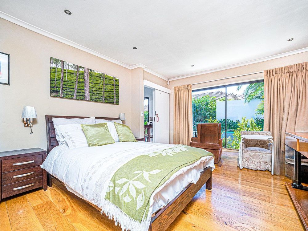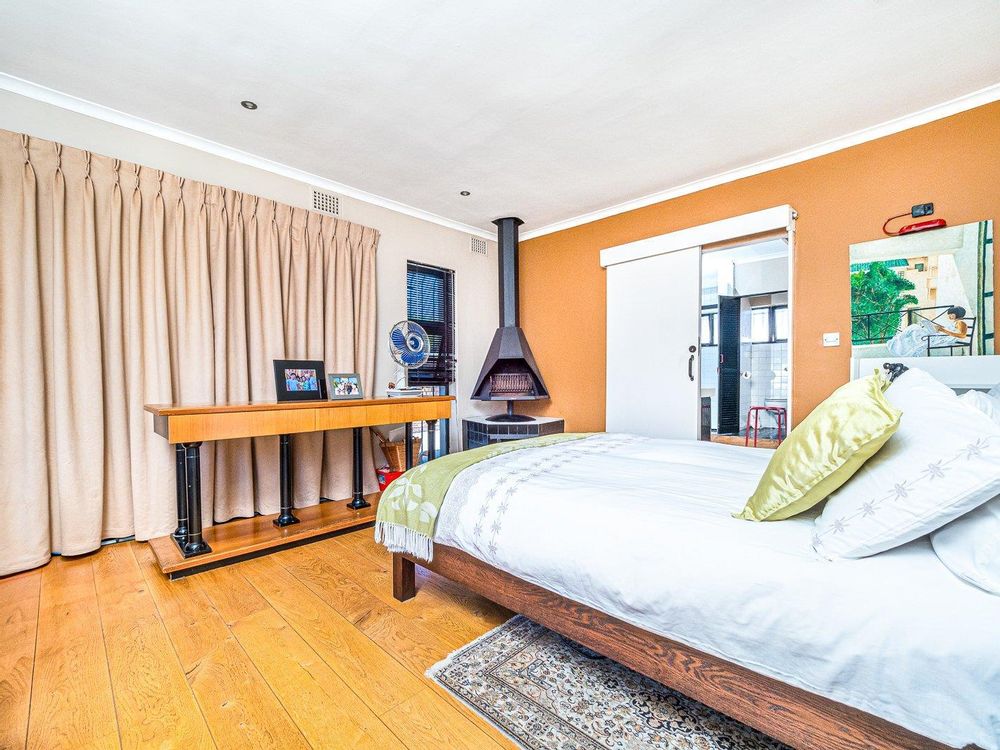 The heart of the home revolves around the delightful kitchen area which was the pride of a famous chef. Enjoy your culinary experience in this open-plan gourmet kitchen with bespoke cabinetry. The contemporary fully fitted kitchen was ahead of its time. Has a built-in 4 plate gas stove, gas griller and an additional 2 plate gas stove. The out of sight scullery area has points for a dishwasher, washing machine and dryer.
