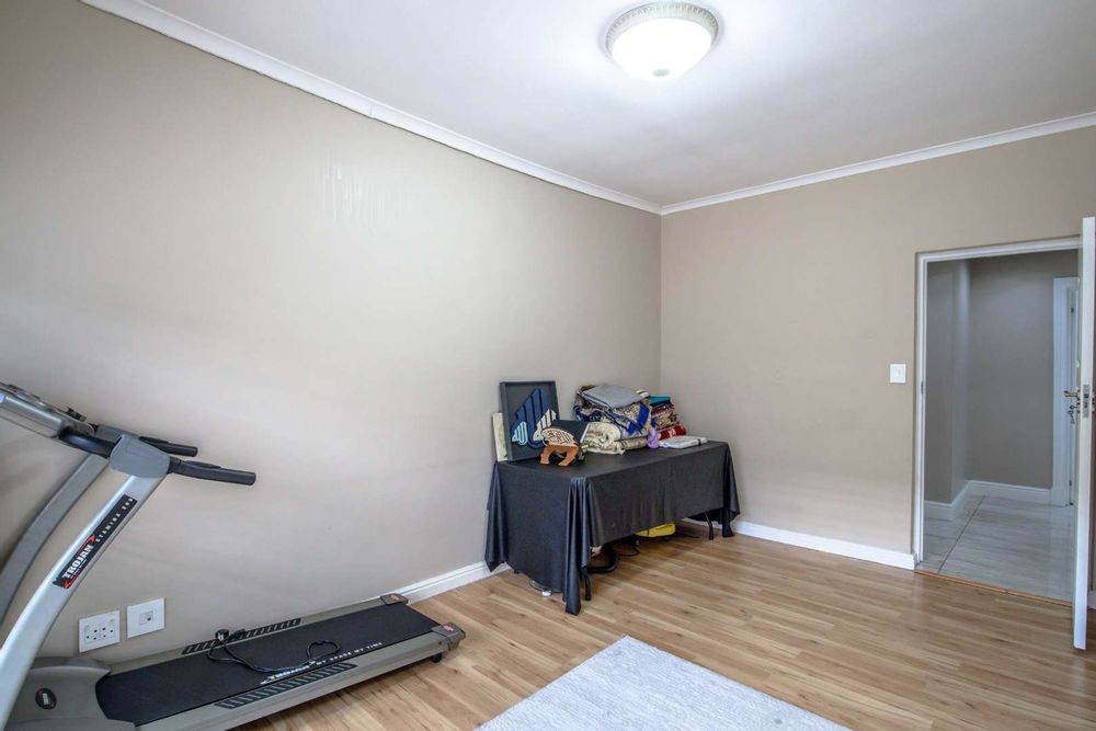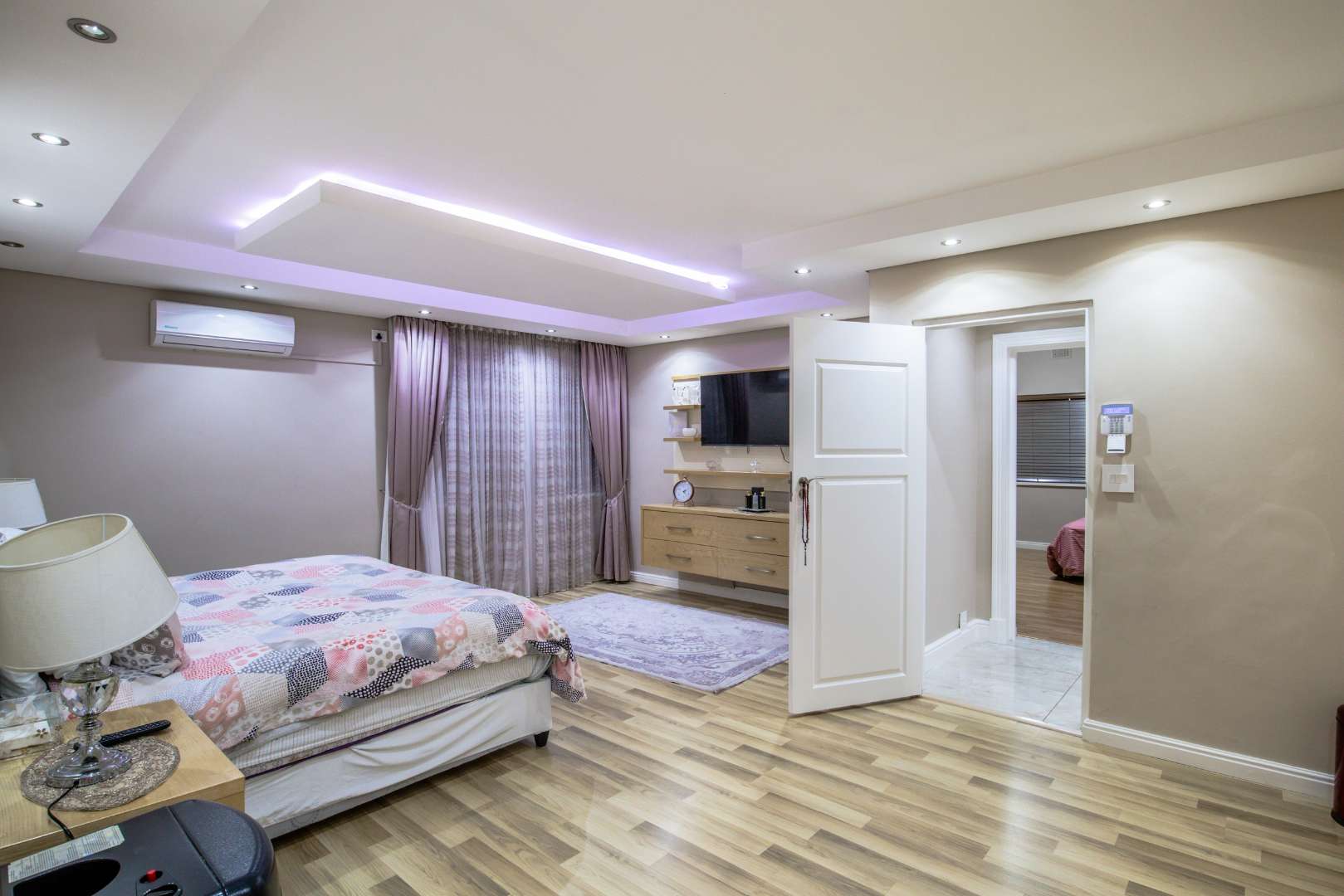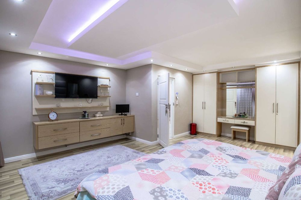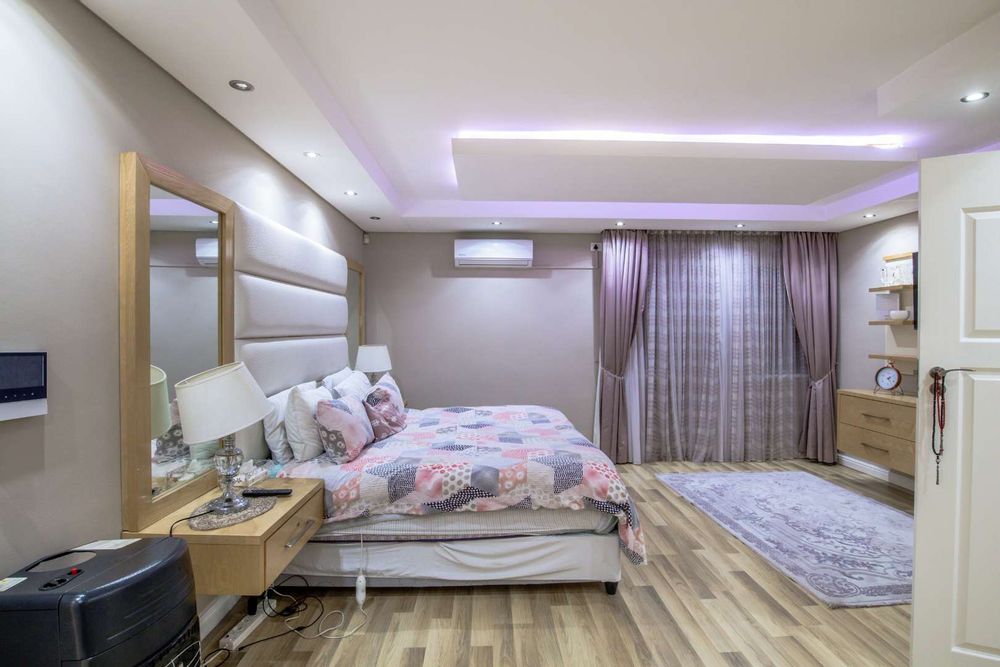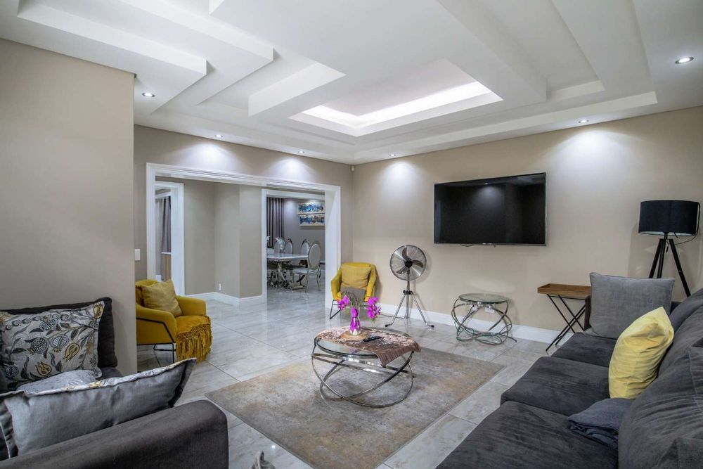 Impeccably presented in an exceptional family environment. Entering through the front door, one tends to feel a sense of serenity created by the flawless feel throughout. Offering 4 luxurious bedrooms with a blend of tiled and laminate flooring. The master bedroom is finished off with air-conditioning, a dressing area and an en-suite bathroom. 2 opulent bathrooms, rich in design and offering a trendy feel and living areas comprising, a spacious family lounge and an awesome family dining area . All these spaces flow into the chefs gourmet kitchen that offers built in cabinets all around, a breakfast diner, an eye-level oven and a 5 plate gas stove. The stylish residence boasts an alarm system, CCTV, indoor and outdoor beams. Outside find staff quarters that could be ideal as an additional bedroom or storage area, an automated double garage and additional secure parking to accommodate 2 vehicles.