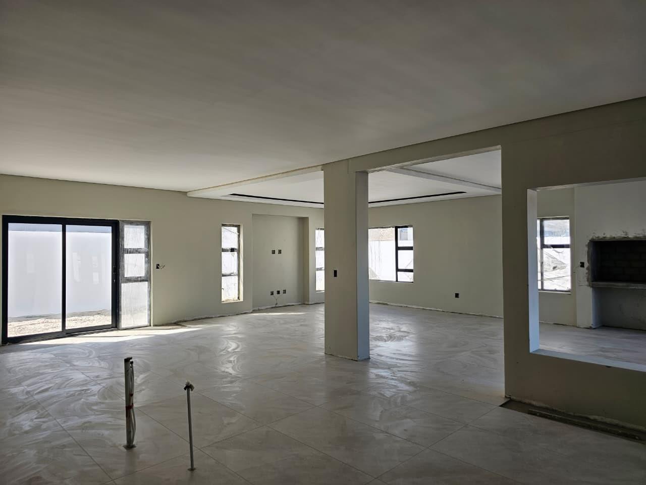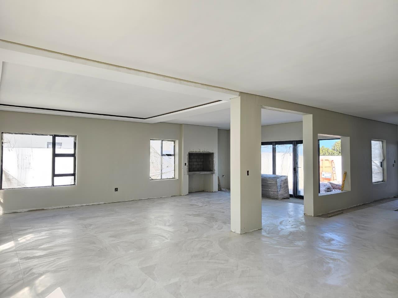 The home features four generously sized bedrooms and four stylish bathrooms, all finished with sleek, modern fittings. The open-plan lounge, kitchen, and dining area forms the heart of the home, designed for both comfortable family living and effortless entertaining. This expansive space includes a built-in braai, creating a seamless indoor entertainment area ideal for year-round enjoyment.