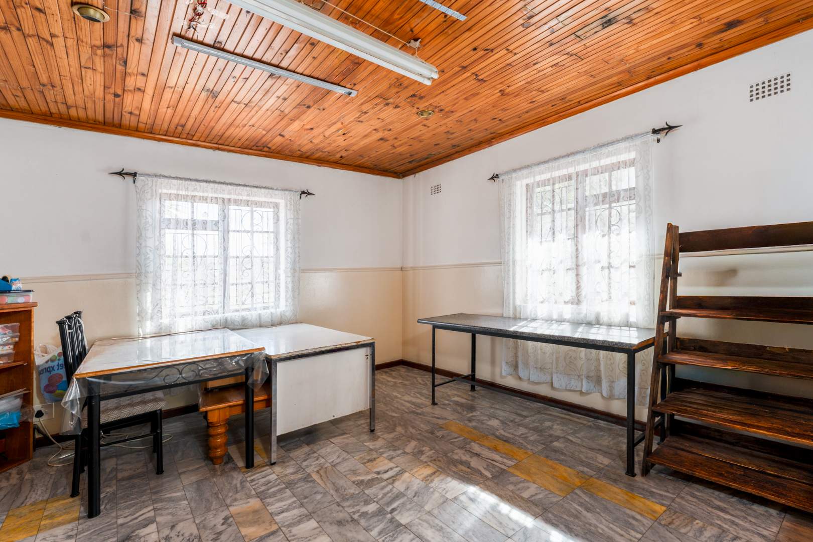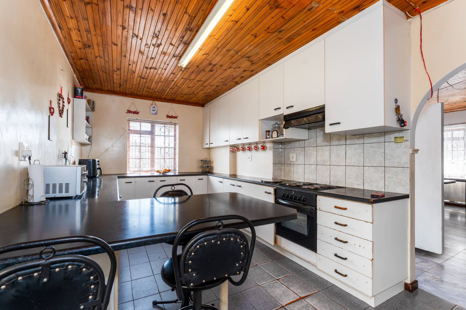 The heart of the home is the spacious lounge and dining room, flooded with natural light, perfect for family gatherings and entertaining. The large kitchen boasts ample cupboard space and leads seamlessly into a practical scullery, ideal for busy families. The three well-sized bedrooms feature built-in cupboards, with the main bedroom enjoying the luxury of an en-suite bathroom. An extra room offers versatility, perfect for a prayer room, study, or additional storage.