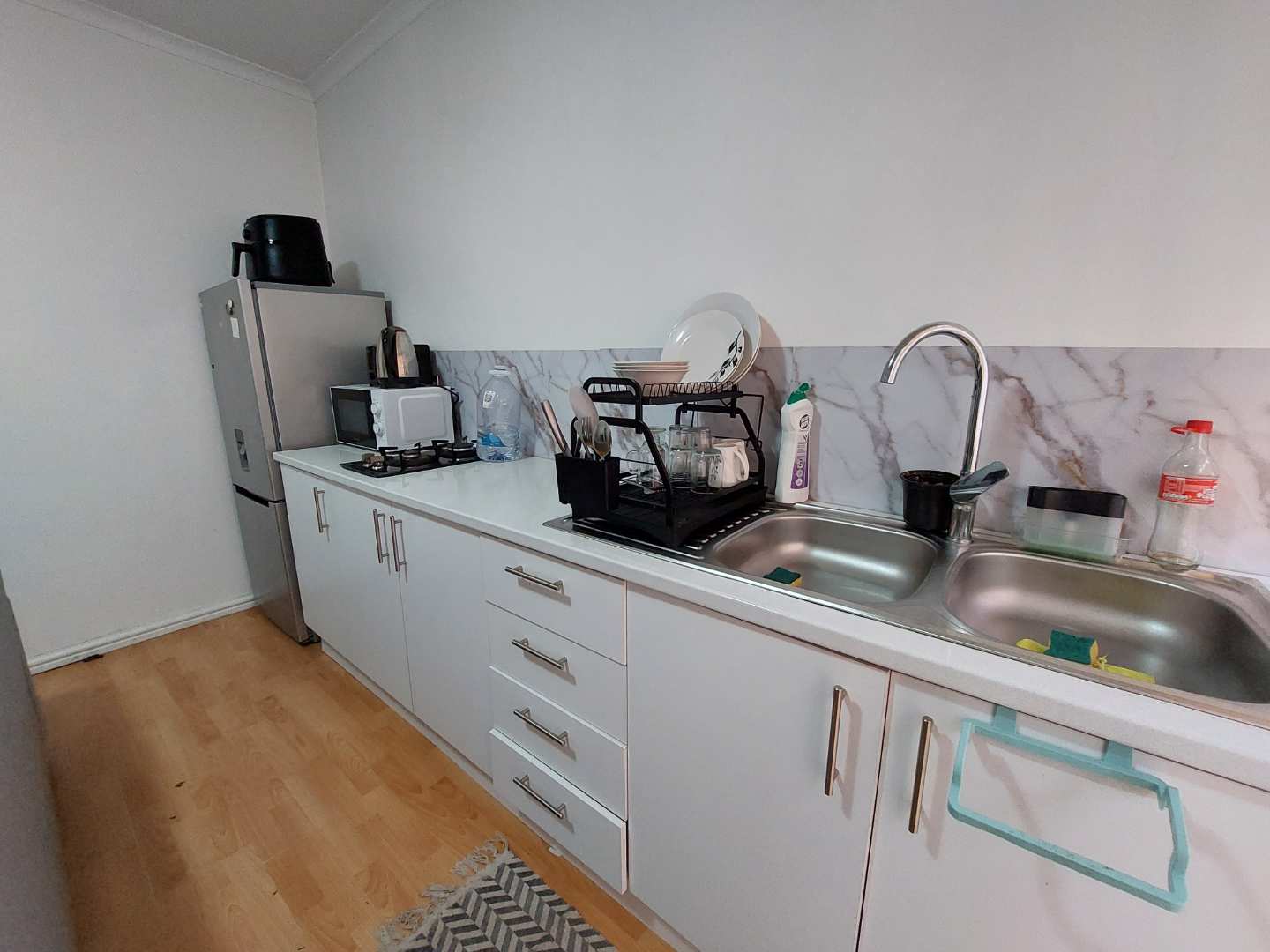 Ideal for a single professional or quiet couple, the unit features a compact open-plan living area and kitchen, a well-sized bedroom with built-in cupboards, and a neat en-suite bathroom with a shower.