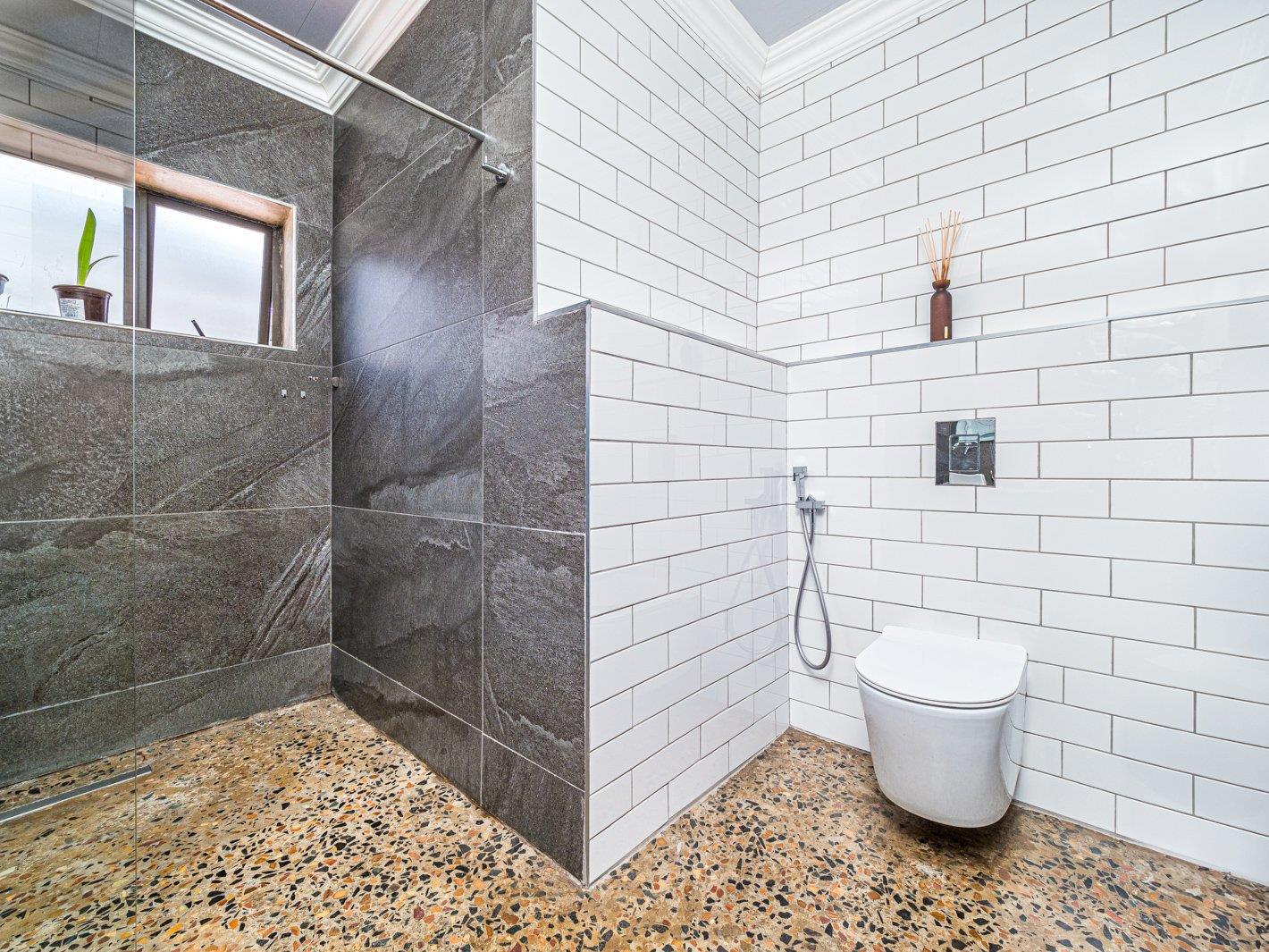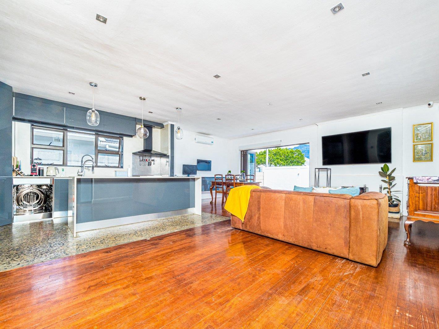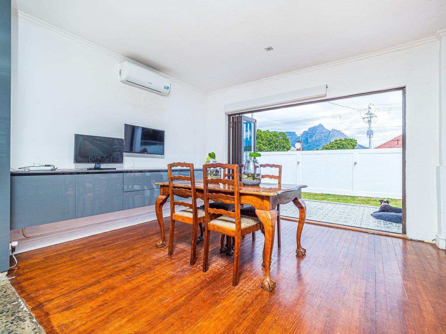 Lovely flow from the open plan kitchen, dining area with air-con, lounge with old fashioned wood burning fireplace, leading out to garden that is great for entertaining via aluminum stack doors.
