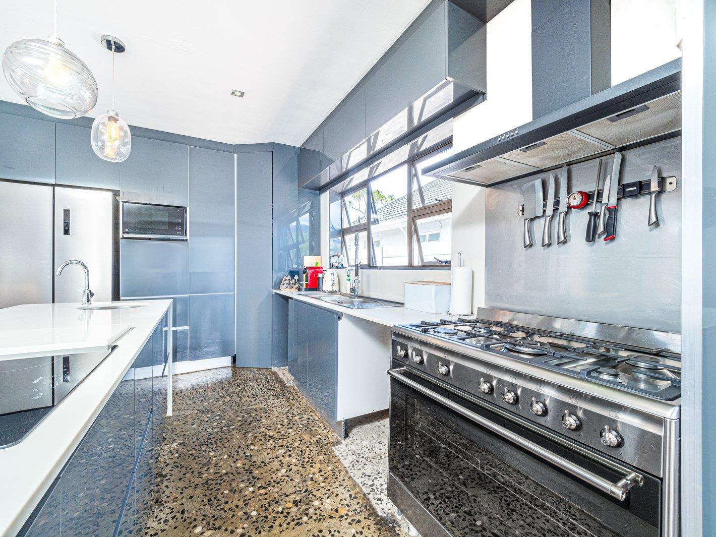 A magnificent fully fitted kitchen with Caesarstone and gas Smeg stove. Wrapped high gloss finish.