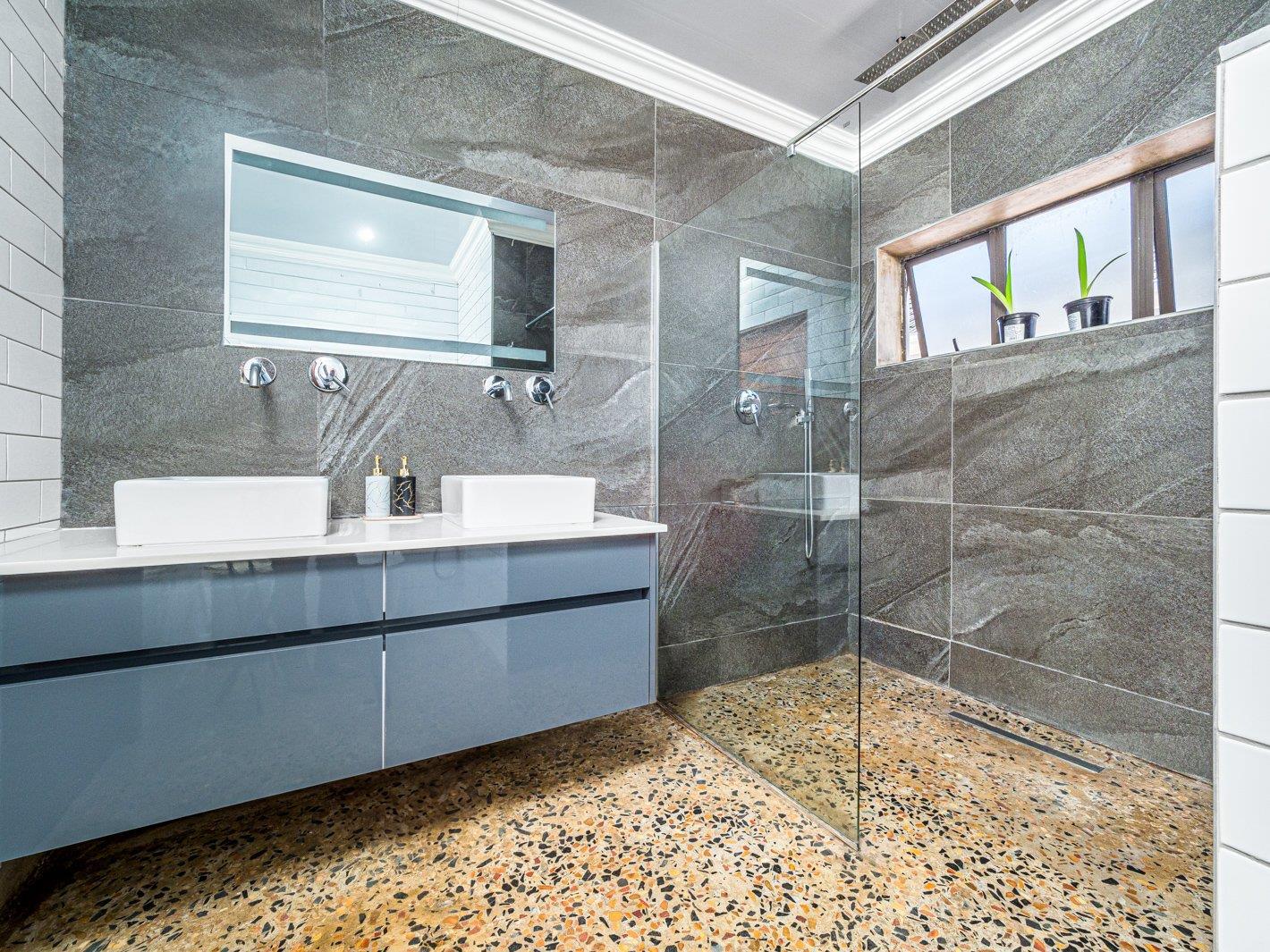 The family bathroom also with double vanity and geberit.