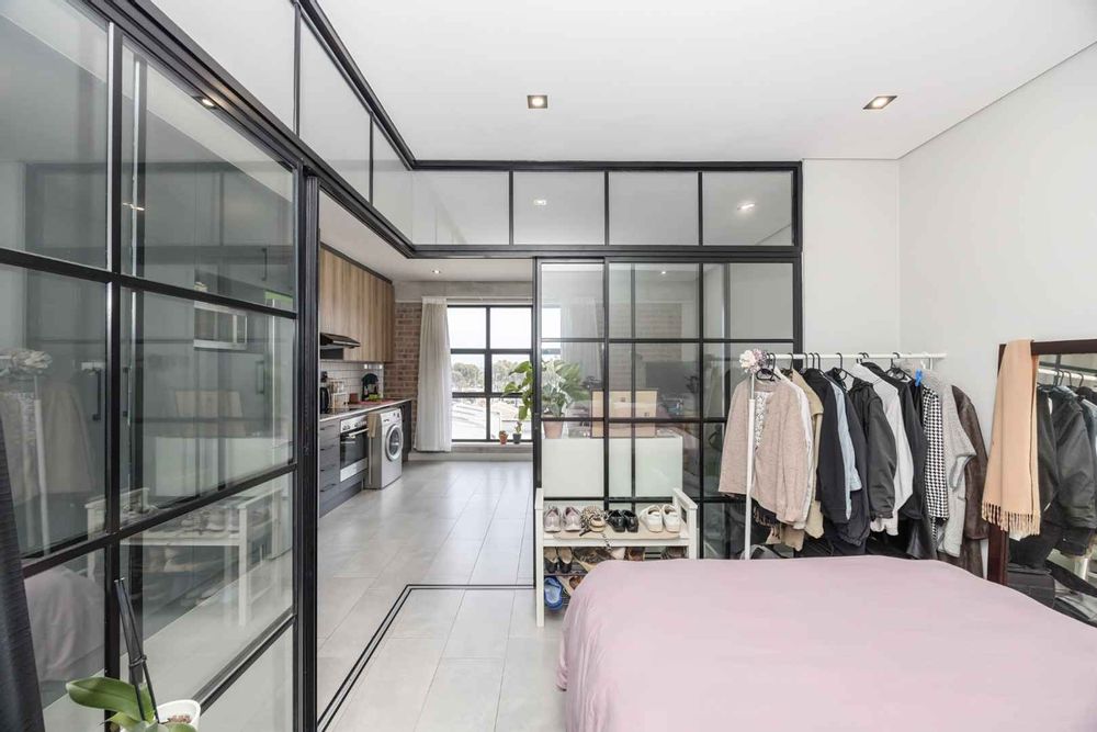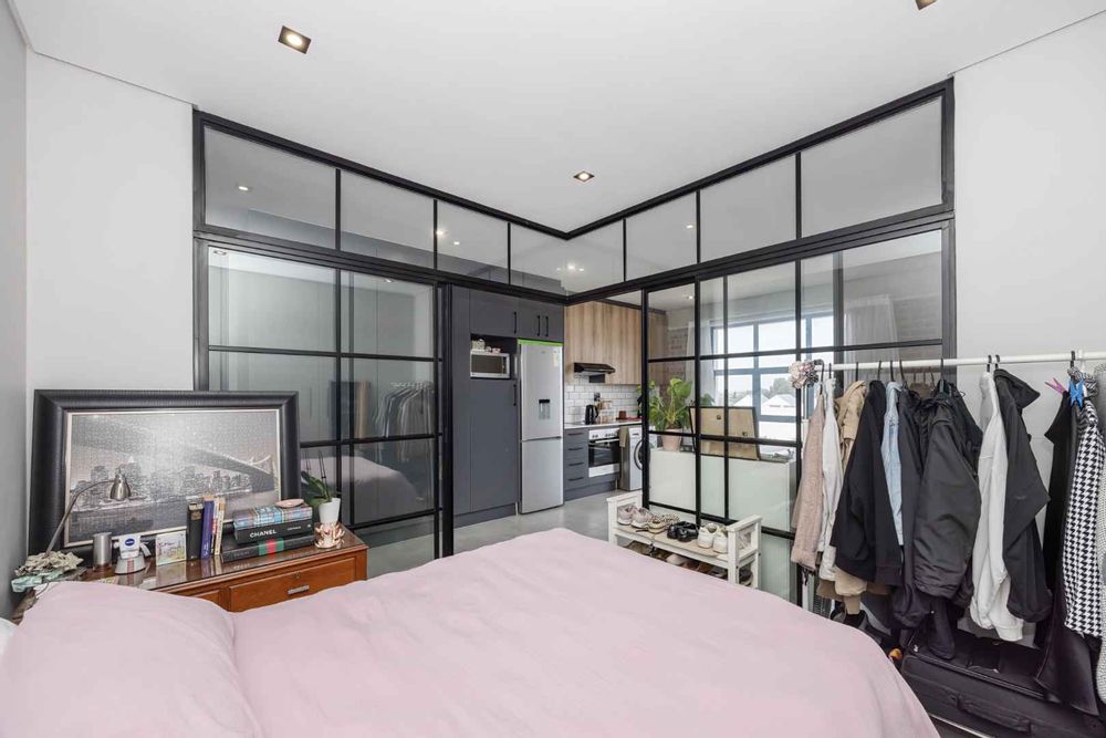 The kitchenette is equipped with modern appliances and ample storage, while the cosy sleeping area is designed for comfort. Separate bathroom completes the space, featuring modern fixtures and a clean, minimalist design.