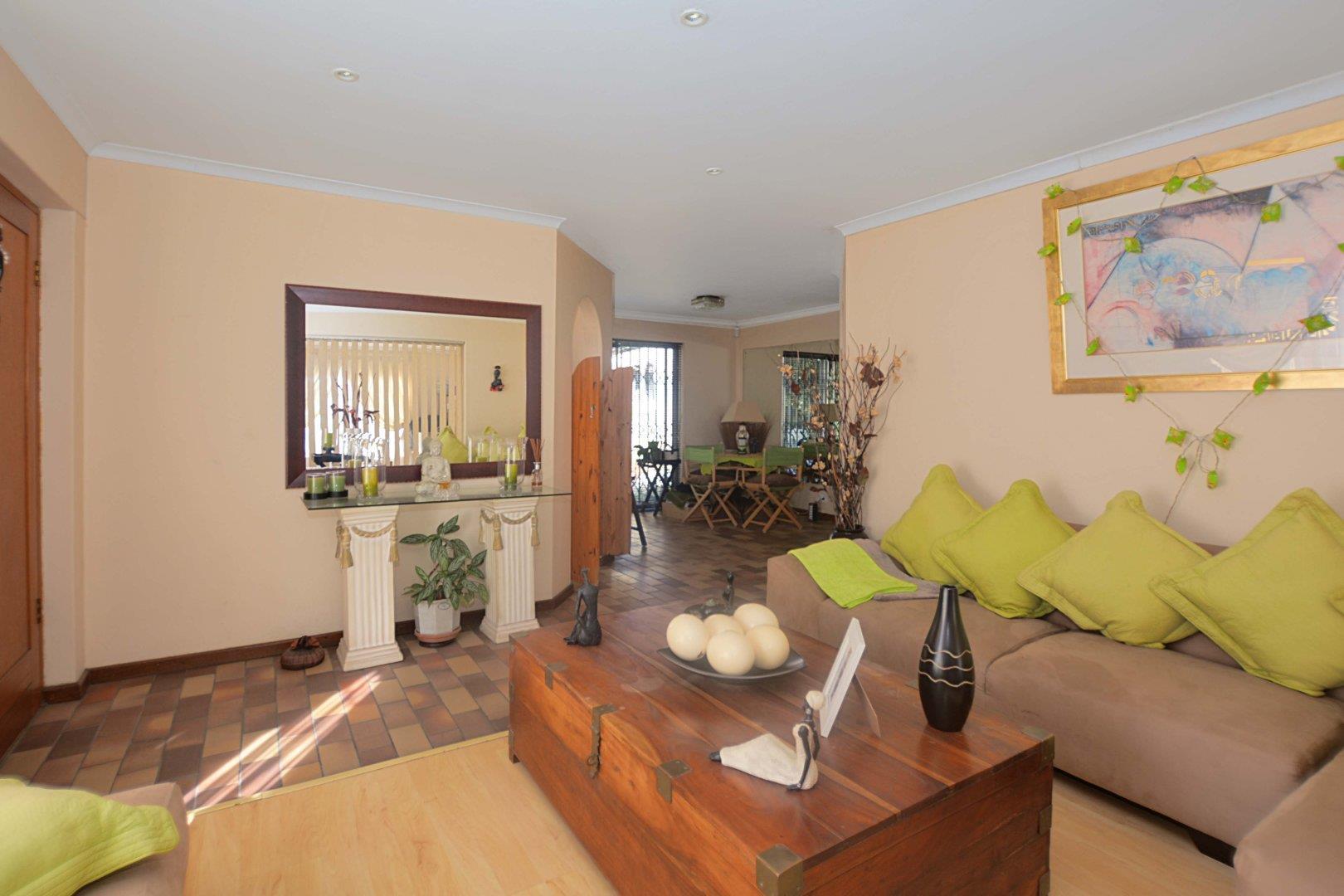 This exceptional and exclusive property listing boasts a well-maintained family home located in the heart of Table View. The house comprises three bedrooms, two bathrooms, a spacious living room, an entertainment room complete with a built-in bar, sliding doors leading to the swimming pool, and an additional living area that seamlessly flows into the TV room, lounge, and open-plan kitchen with a dining section. The outdoor space features a covered patio accessible through sliding doors from the dining room, all secured with sturdy security gates.