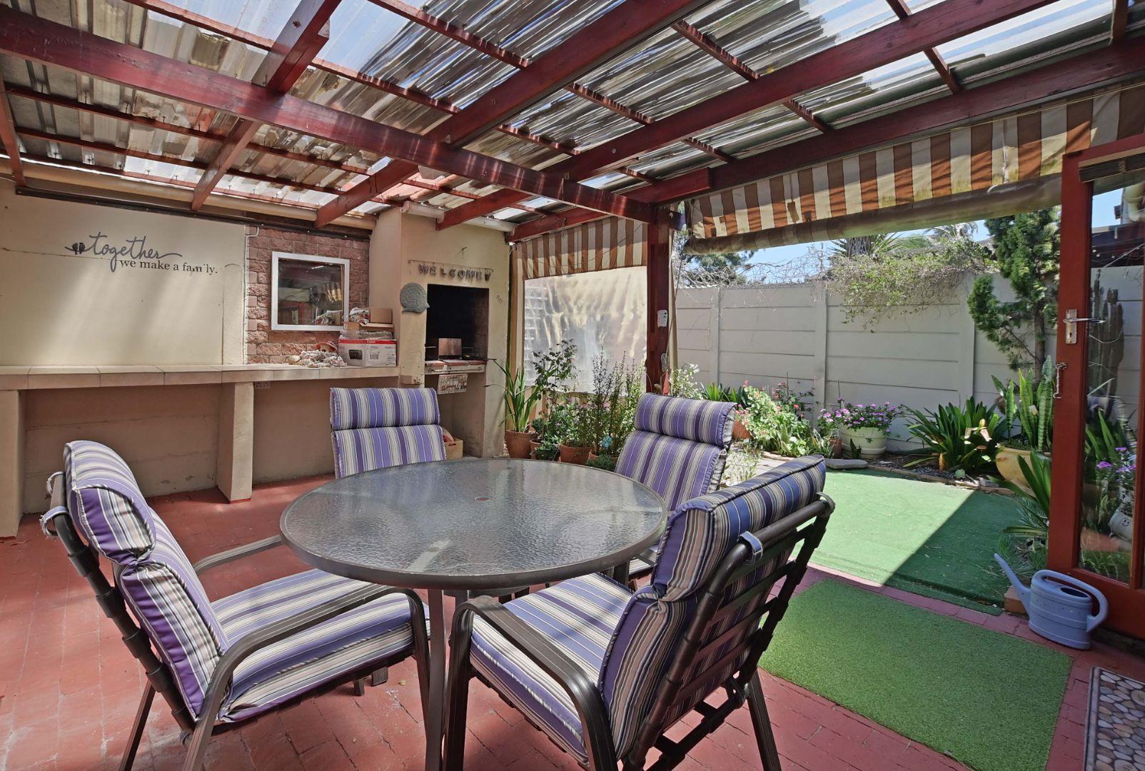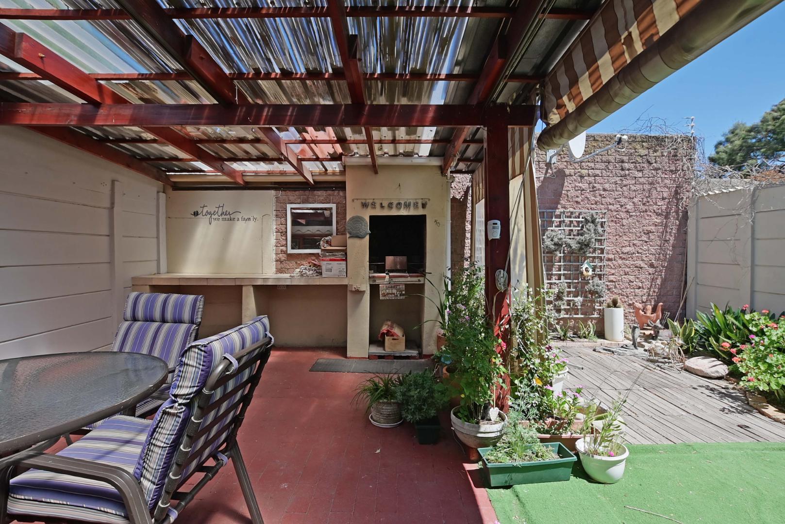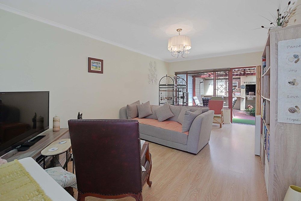 An open-plan lounge flows effortlessly into a private, low-maintenance garden—perfect for outdoor entertaining or relaxation. Enjoy all-weather comfort with a partially covered patio and a built-in braai.