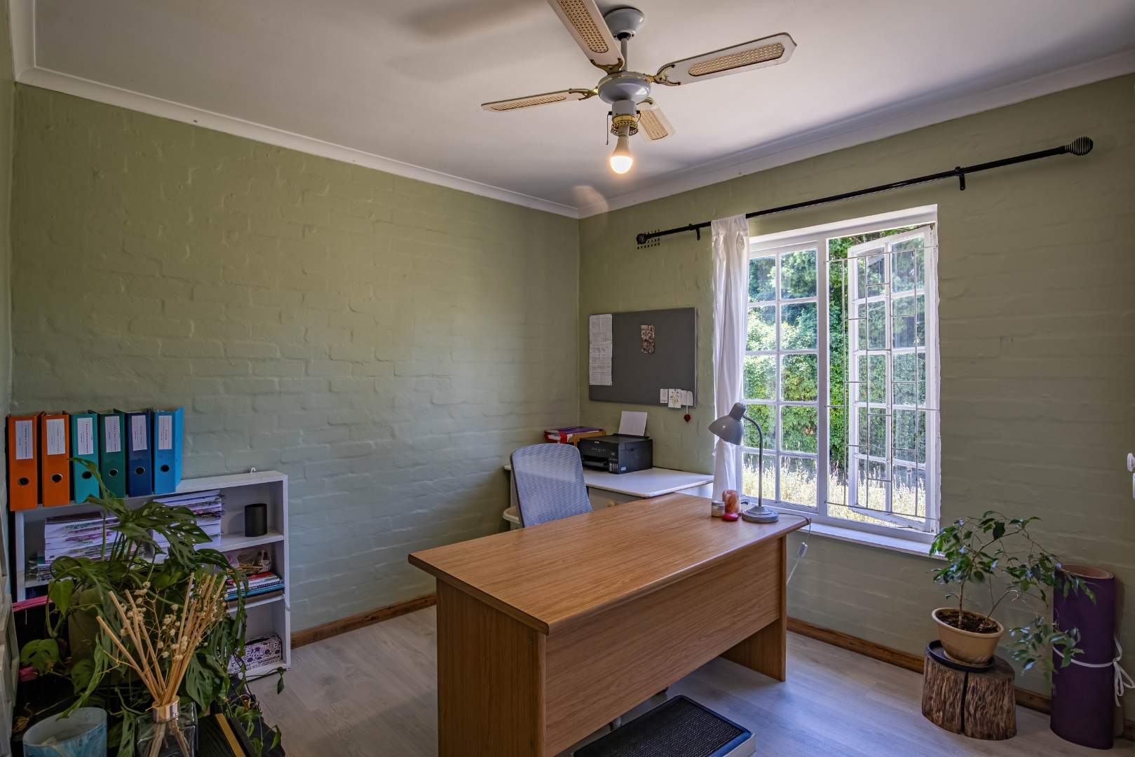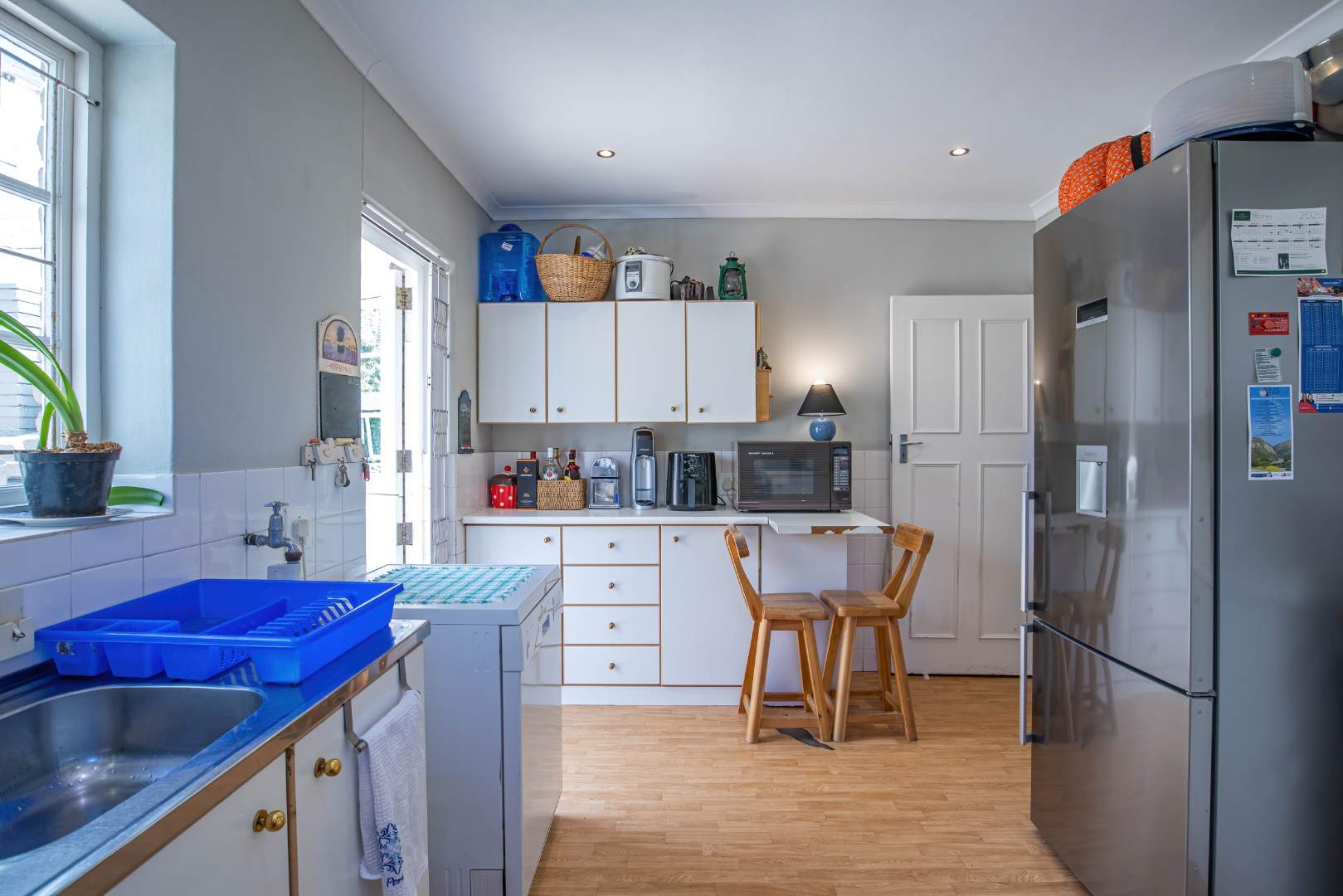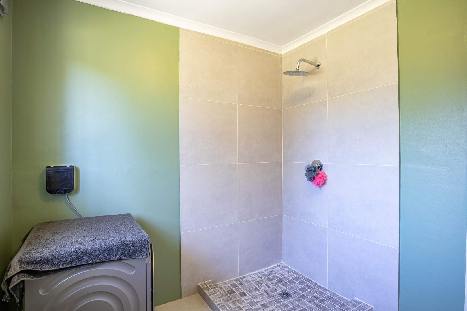 There is a big, covered utility area adjoining the kitchen, which includes wind sheltered braais and access to the back garden, very cozy for those rainy, winter days