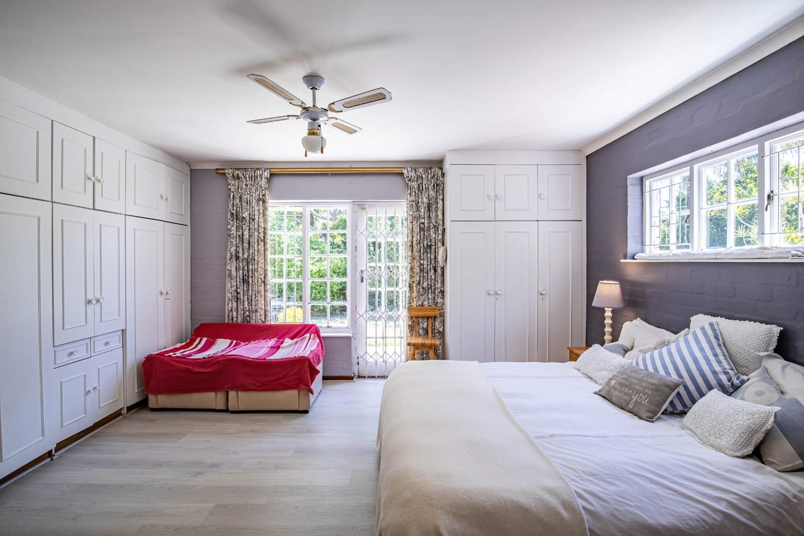 The main bedroom is a generous size with built-in cupboards and a door leading directly
