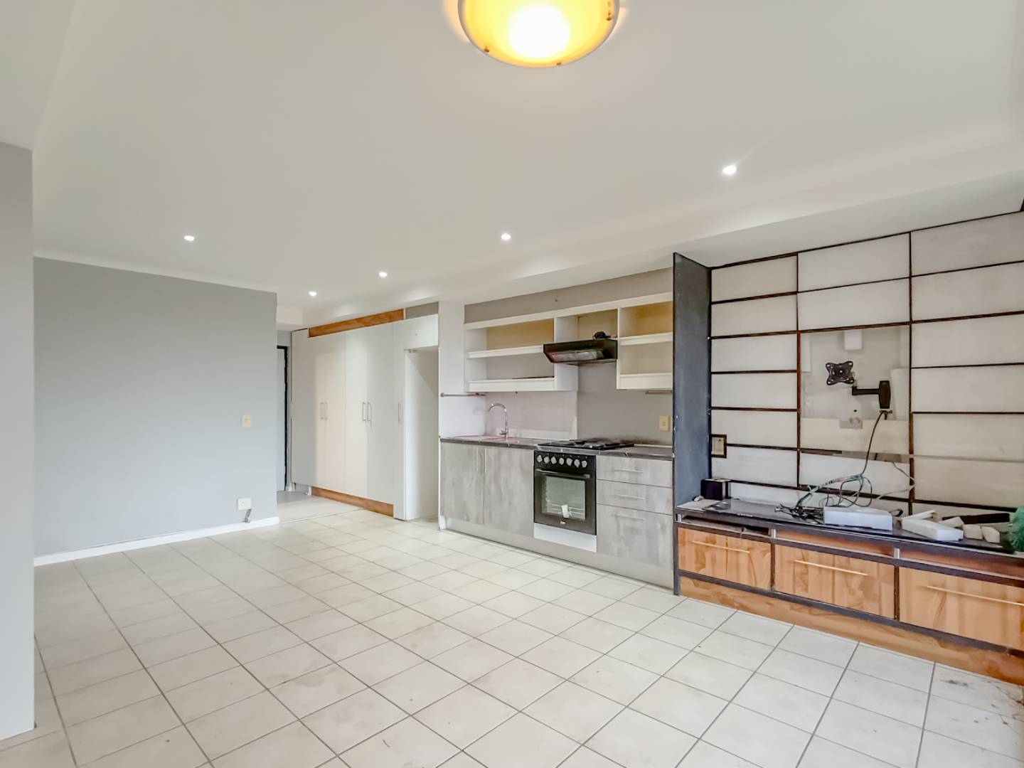 The apartment features an open-plan lounge, creating a spacious and airy living area that seamlessly connects with the kitchen.
