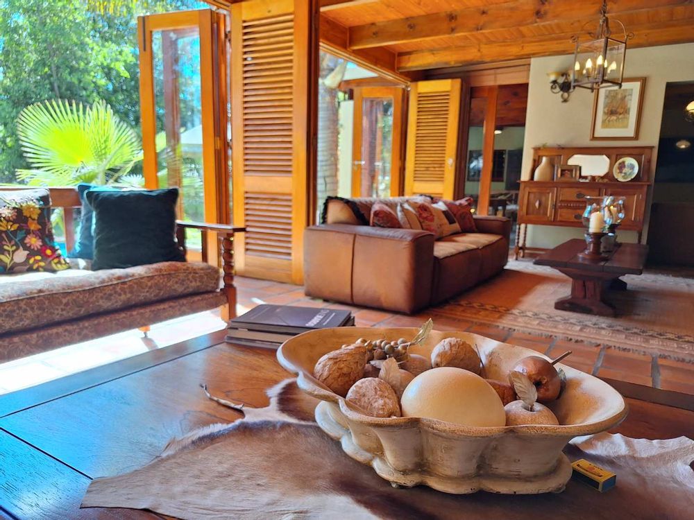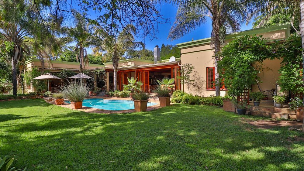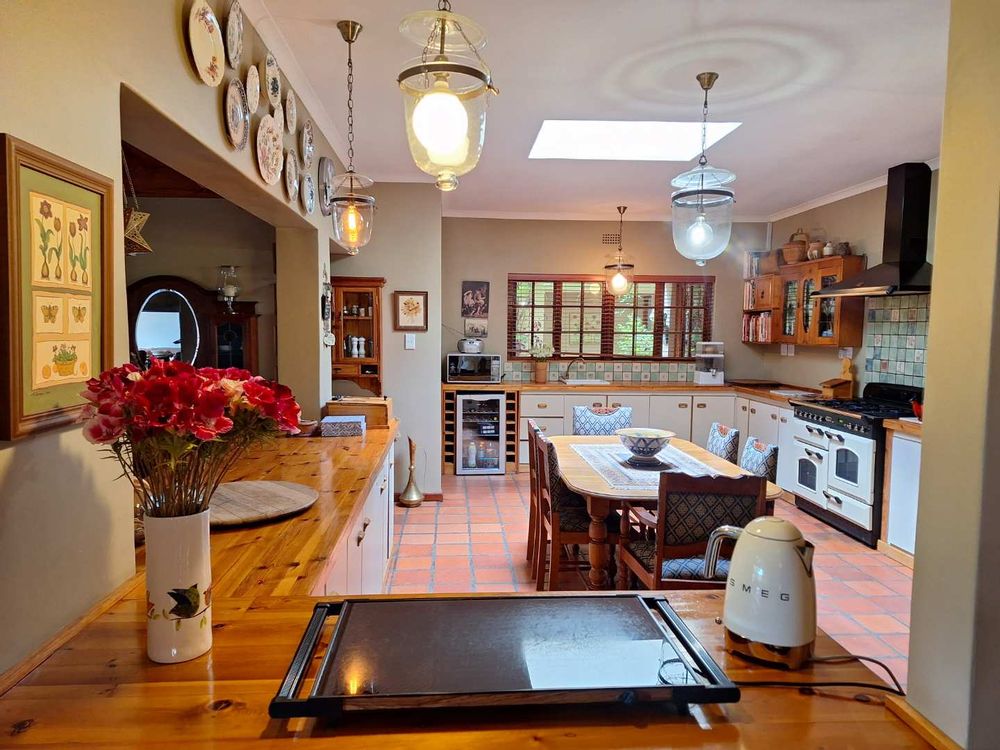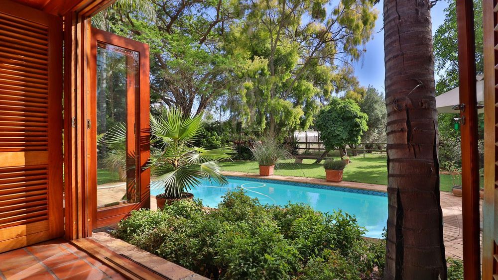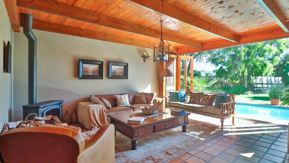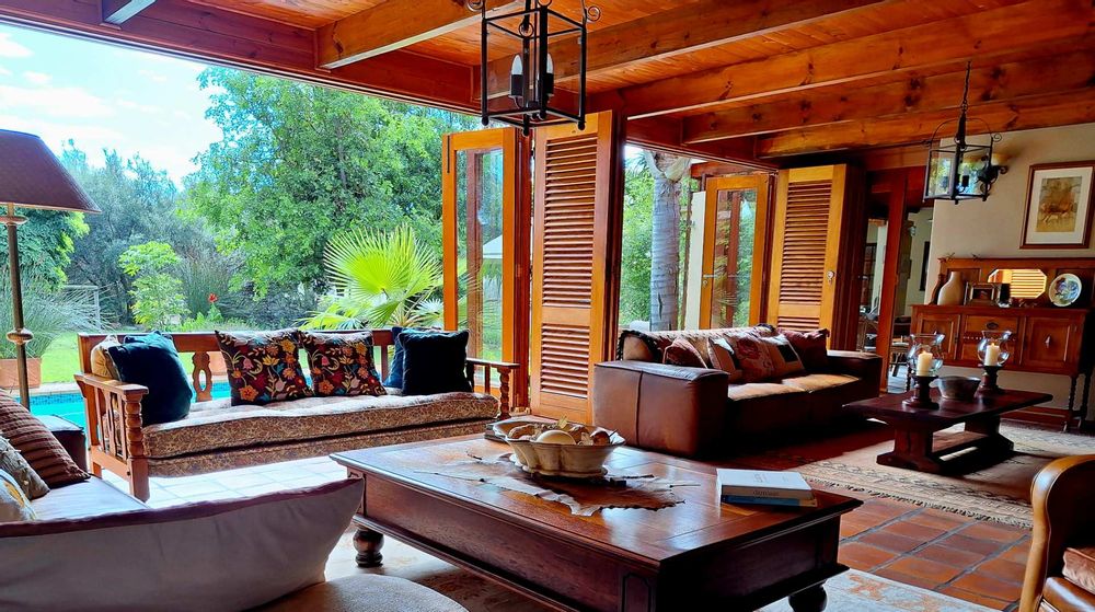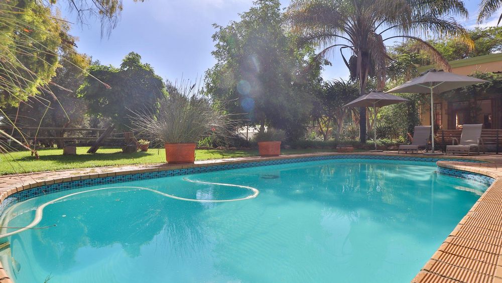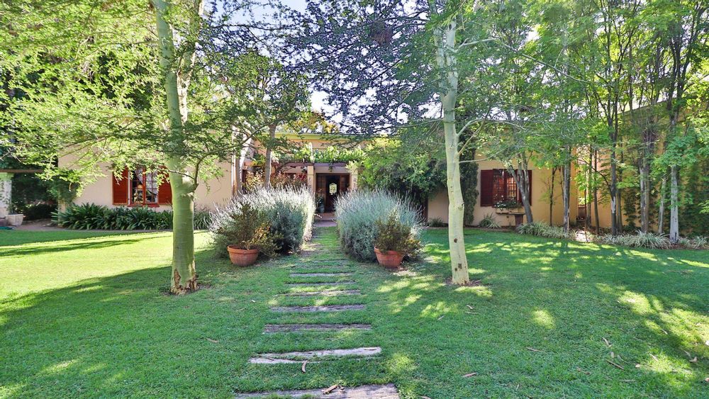 The hub of the home boasts the breathtakingly, sundrenched open-plan kitchen, living and dining room areas expanding into the sparkling oversized swimming pool and outdoor braai area, spilling into the the beautifully established garden displaying a profusion of an abundance of shady trees, shrubs, sweeping green lawns, an established vegetable garden covered by 20 percent white shade netting and overflowing into an olive grove boasting 96 mature olive trees.