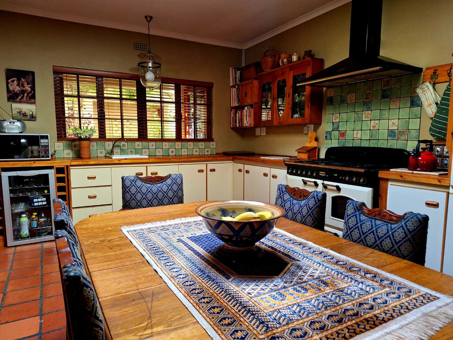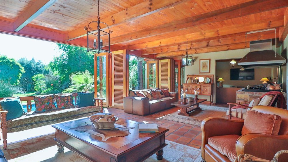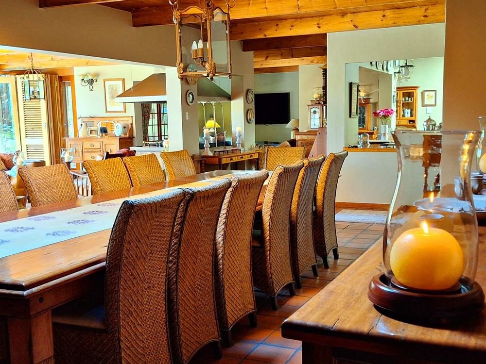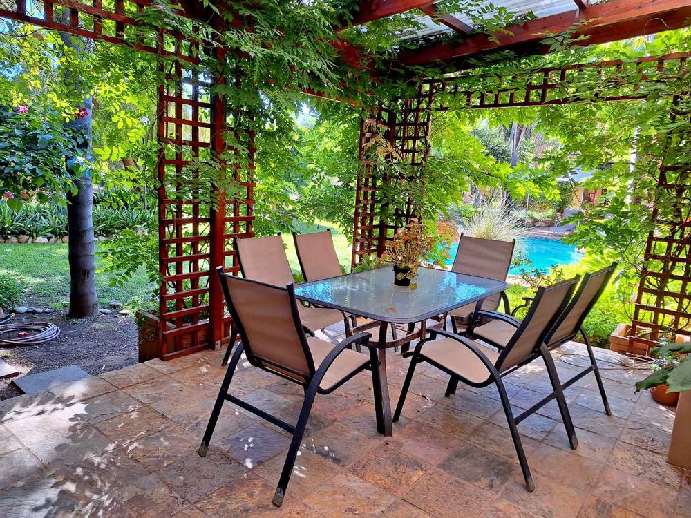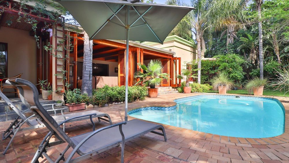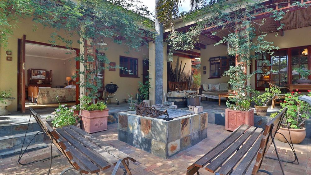 The hub of the home boasts the breathtakingly, sundrenched open-plan kitchen, living and dining room areas expanding into the sparkling oversized swimming pool and outdoor braai area, spilling into the the beautifully established garden displaying a profusion of an abundance of shady trees, shrubs, sweeping green lawns, an established vegetable garden covered by 20 percent white shade netting and overflowing into an olive grove boasting 96 mature olive trees.