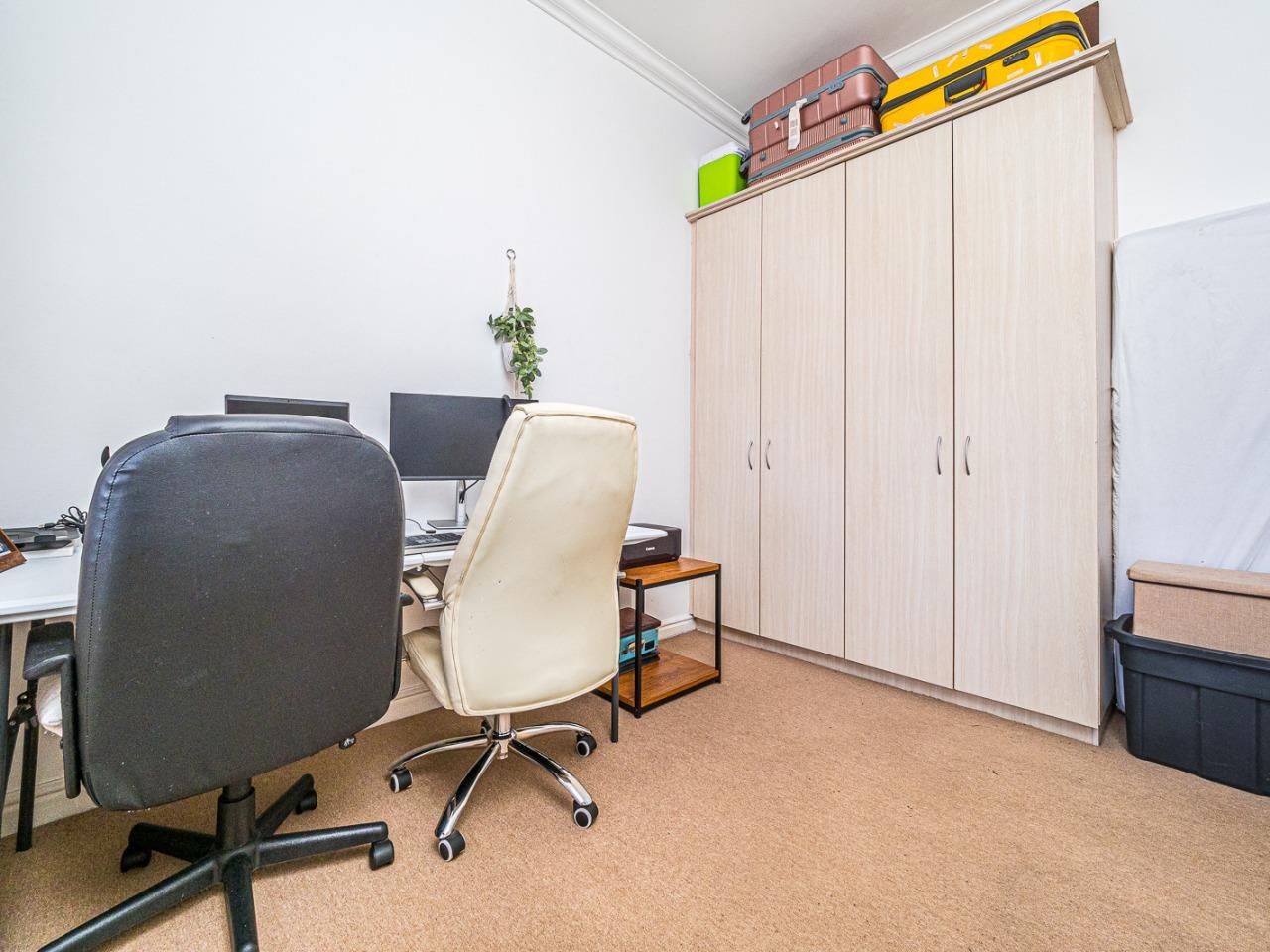 Both bedrooms are equipped with built-in cupboards and clean carpets. The bathroom has a shower over the bath.