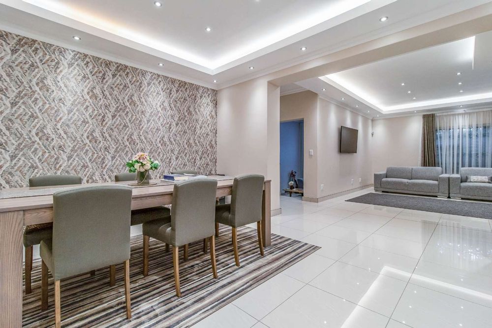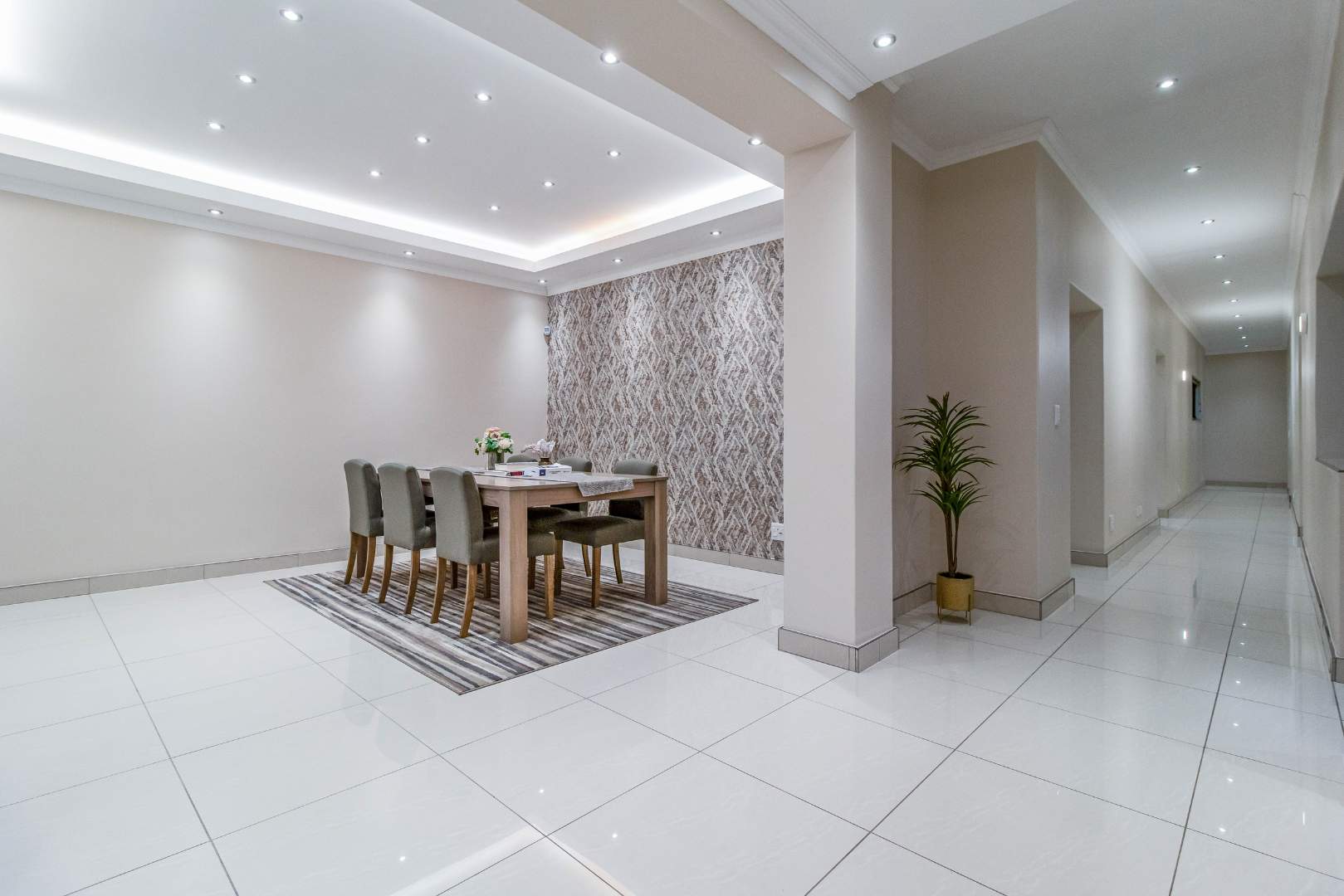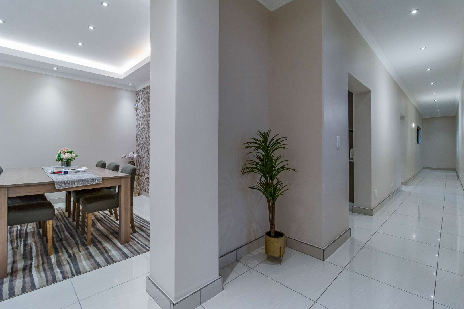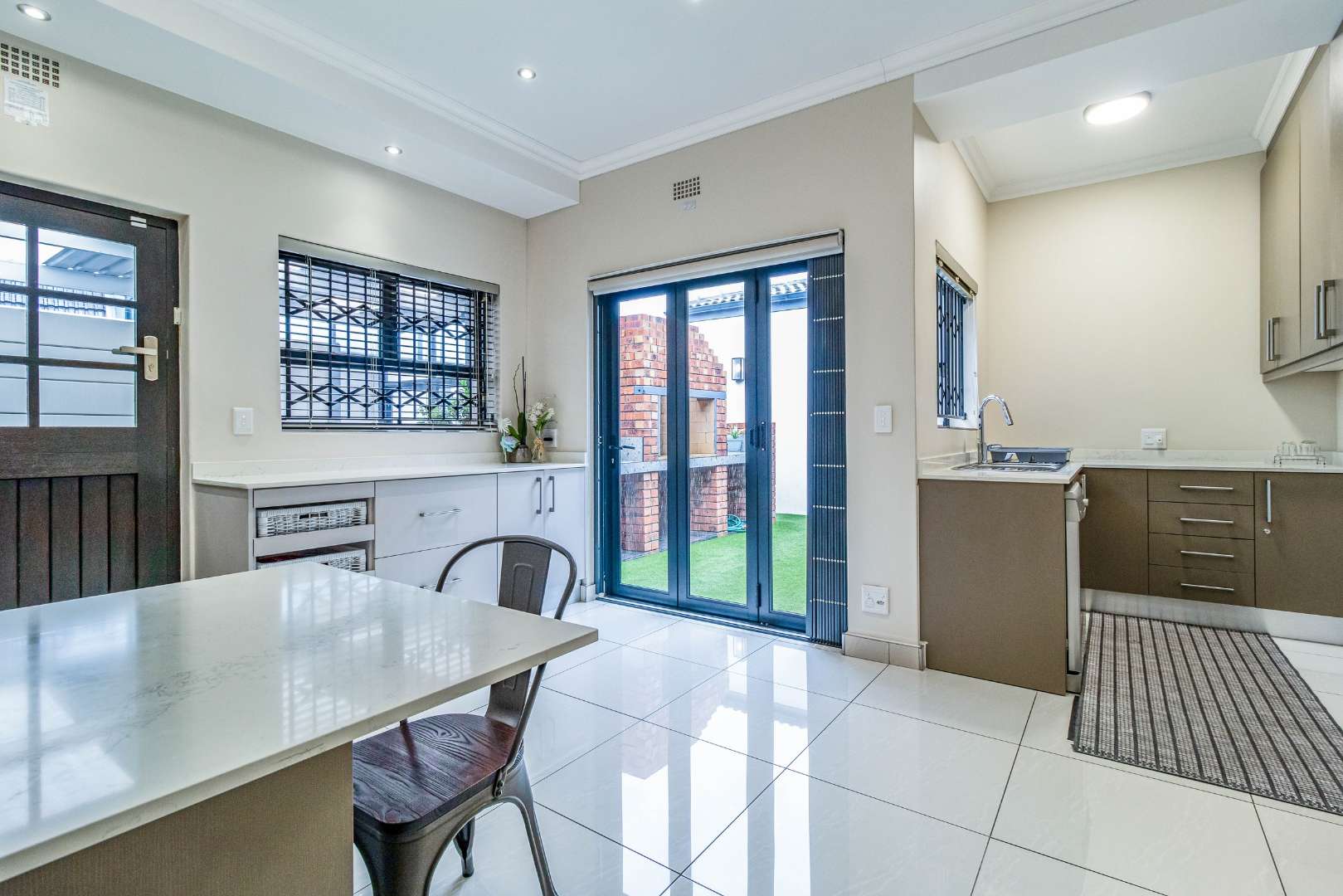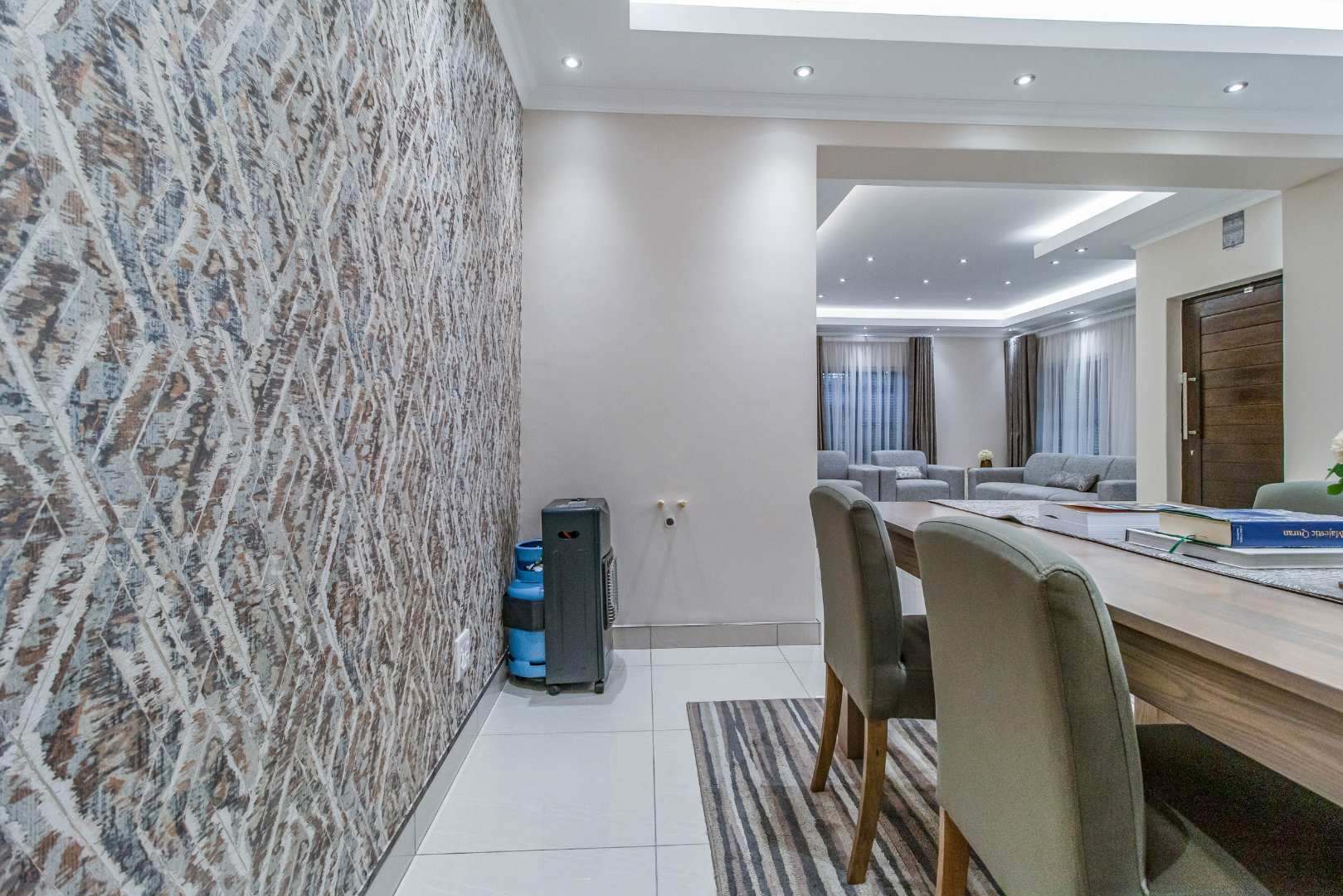 3 Bedrooms impeccably presented in an exceptional family environment. Entering through the front door, one tends to feel a sense of serenity created by the flawless feel throughout. Offering 3 luxurious bedrooms with built in cupboards. The rooms have trendy laminate flooring and the open plan area and bathroom has porcelain tiles. The master bedroom has a dressing area and an en-suite bathroom. Note the master bedroom has been recently completed and has never been used. This home is rich in design and offering a trendy feel and living areas comprising of an open plan family lounge and dining area also has a lovely sunken lounge/TV room that flows to a gourmet chefs kitchen that offers built in cabinets all around, a breakfast diner, leading out onto a family terrace with a braai and play area for kids.