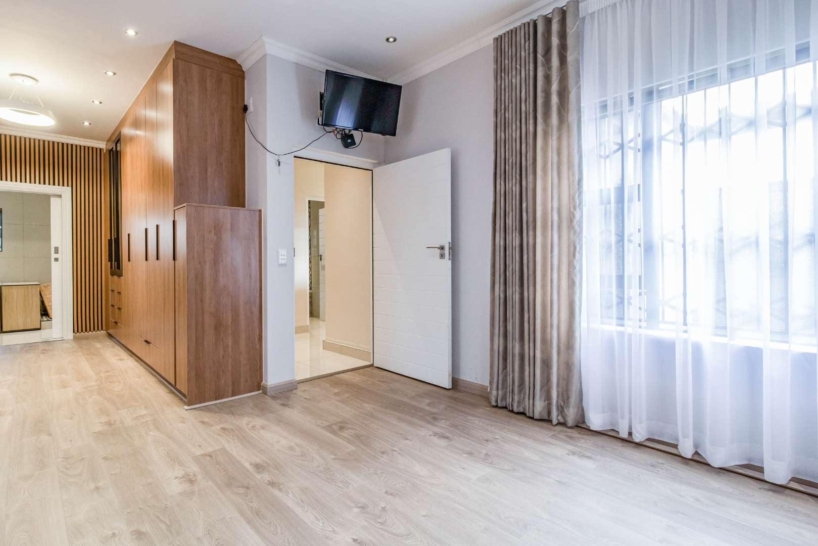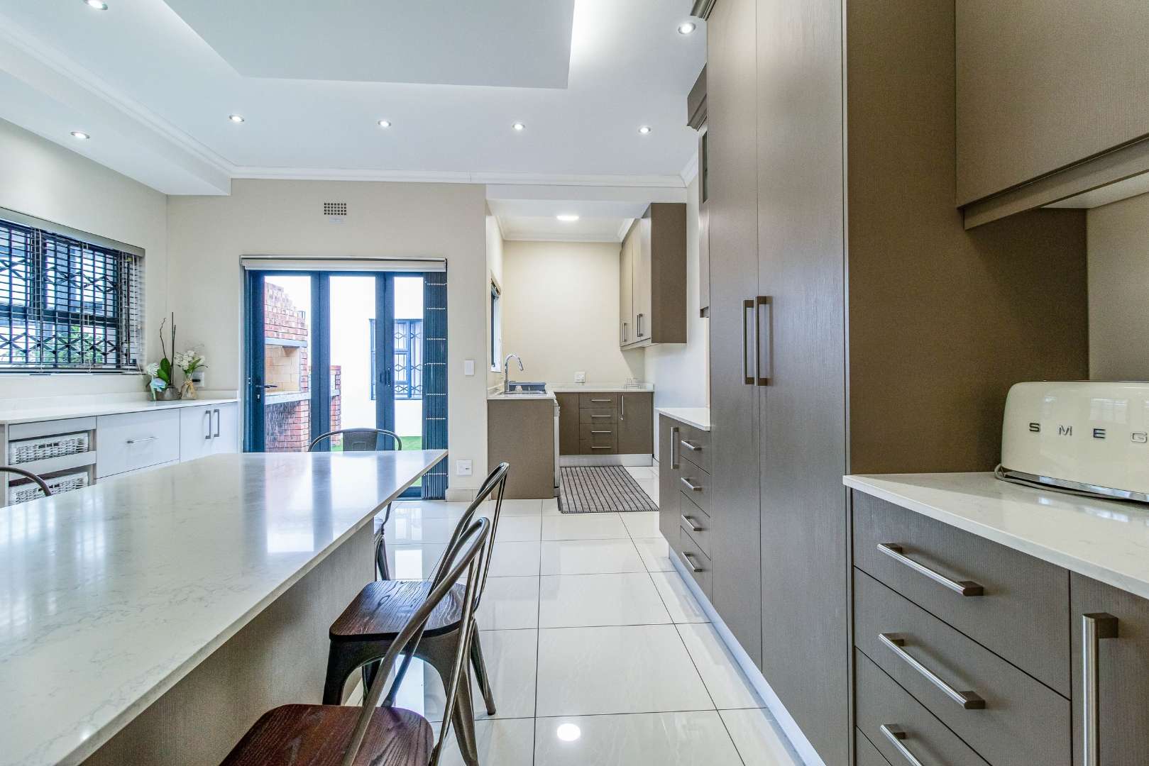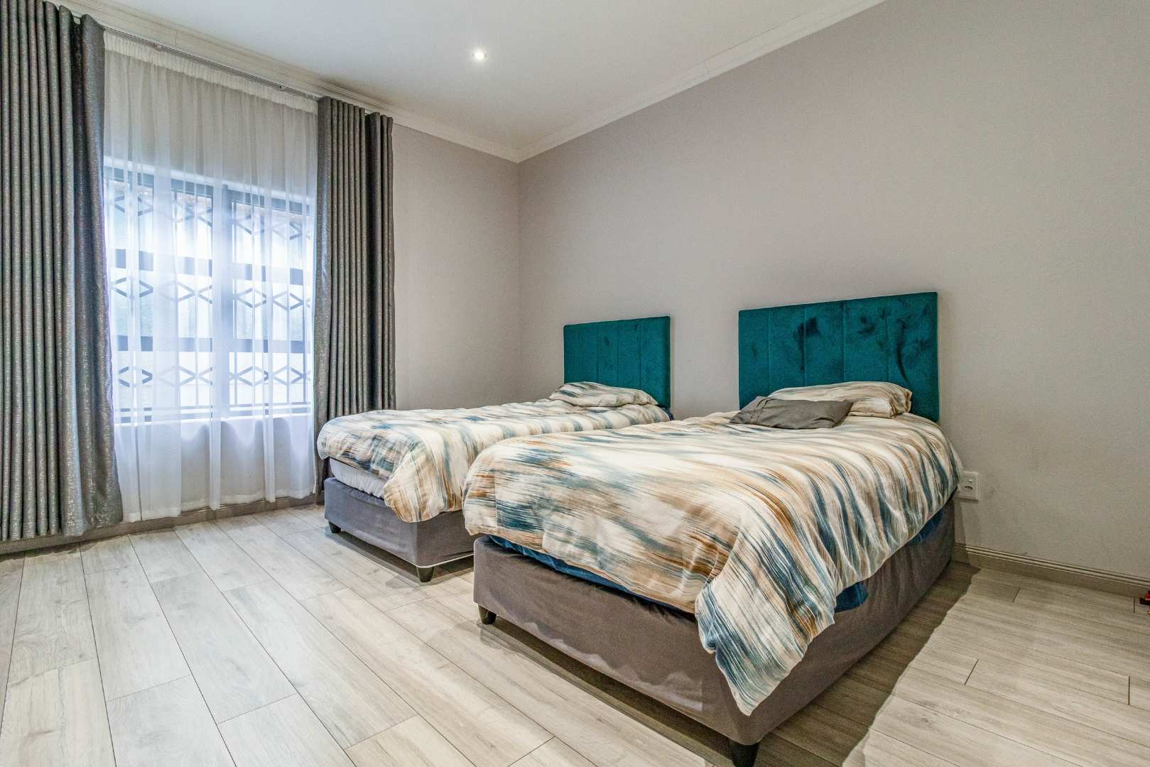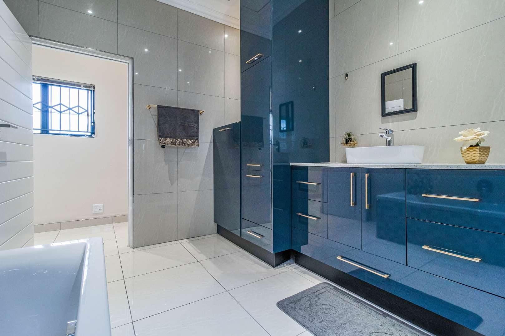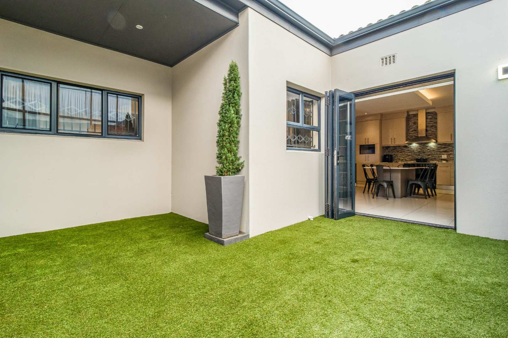3 Bedrooms impeccably presented in an exceptional family environment. Entering through the front door, one tends to feel a sense of serenity created by the flawless feel throughout. Offering 3 luxurious bedrooms with built in cupboards. The rooms have trendy laminate flooring and the open plan area and bathroom has porcelain tiles. The master bedroom has a dressing area and an en-suite bathroom. Note the master bedroom has been recently completed and has never been used. This home is rich in design and offering a trendy feel and living areas comprising of an open plan family lounge and dining area also has a lovely sunken lounge/TV room that flows to a gourmet chefs kitchen that offers built in cabinets all around, a breakfast diner, leading out onto a family terrace with a braai and play area for kids.