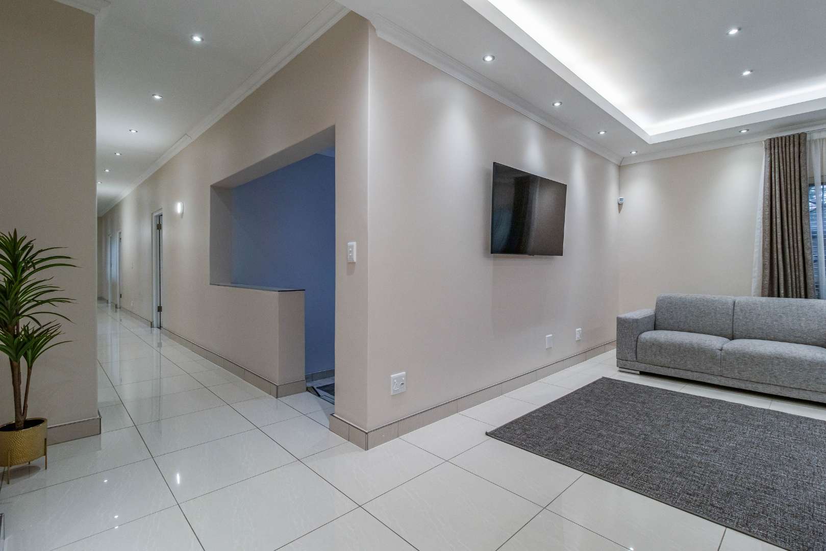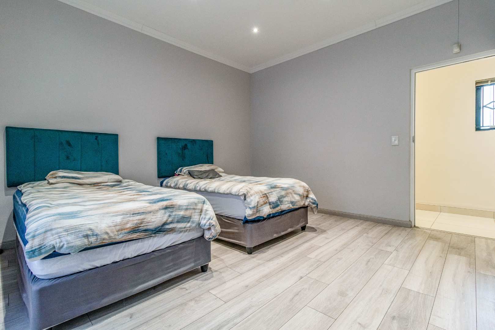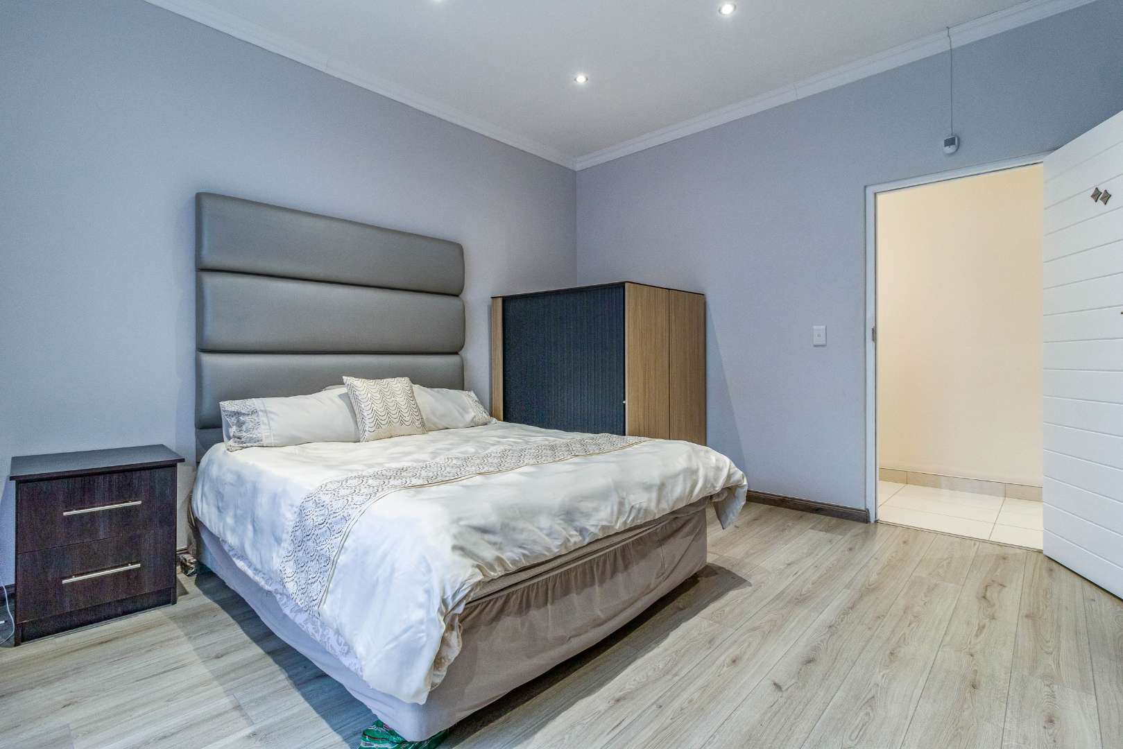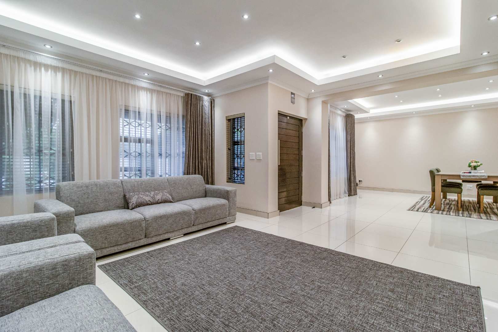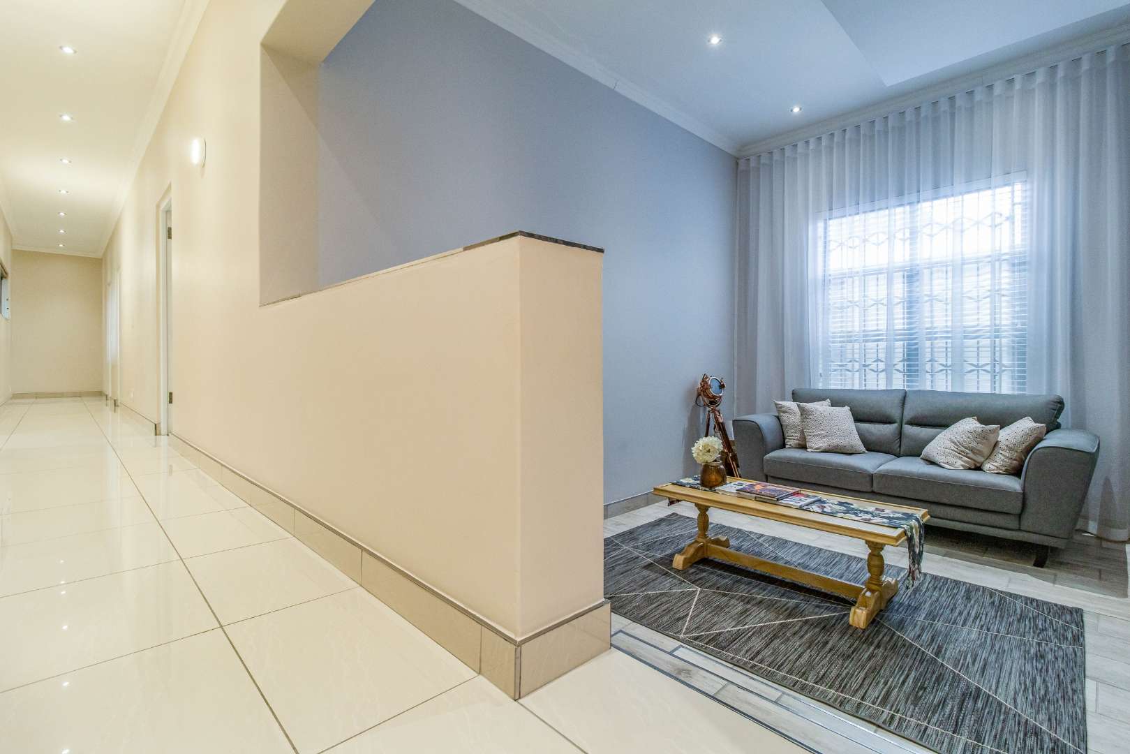 3 Bedrooms impeccably presented in an exceptional family environment. Entering through the front door, one tends to feel a sense of serenity created by the flawless feel throughout. Offering 3 luxurious bedrooms with built in cupboards. The rooms have trendy laminate flooring and the open plan area and bathroom has porcelain tiles. The master bedroom has a dressing area and an en-suite bathroom. Note the master bedroom has been recently completed and has never been used. This home is rich in design and offering a trendy feel and living areas comprising of an open plan family lounge and dining area also has a lovely sunken lounge/TV room that flows to a gourmet chefs kitchen that offers built in cabinets all around, a breakfast diner, leading out onto a family terrace with a braai and play area for kids.