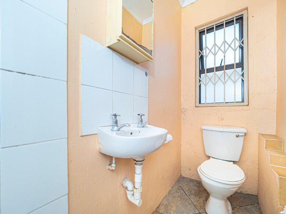 The lounge is spacious with high ceilings and tiled floors. There is a family bathroom and a guest toilet. The main bedroom is generously sized, featuring built-in cupboards, laminated flooring, high ceilings, and an en-suite bathroom.