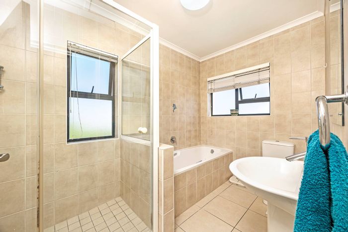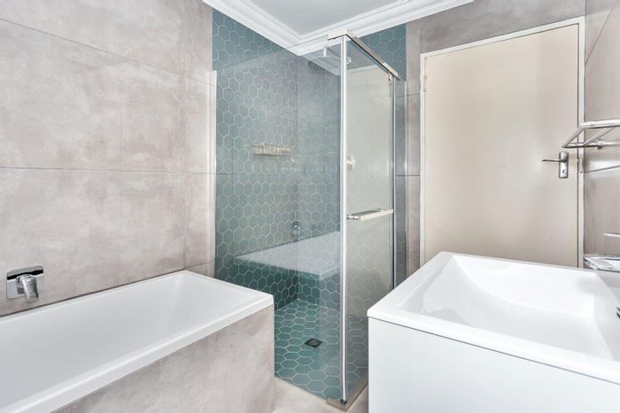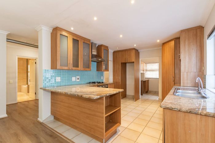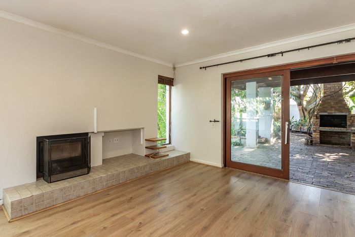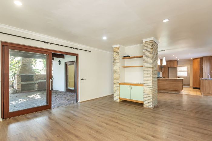 Corner townhouse with open-plan living, renovated kitchen, outdoor braai area, double garage, and communal pool. No pets allowed.