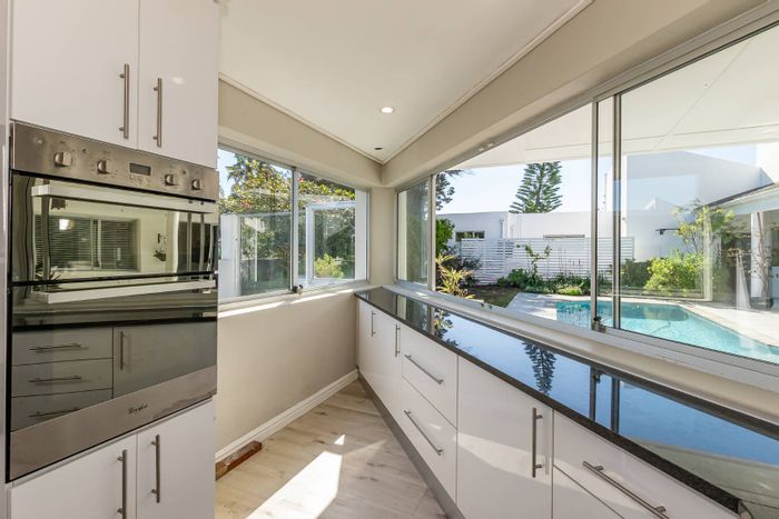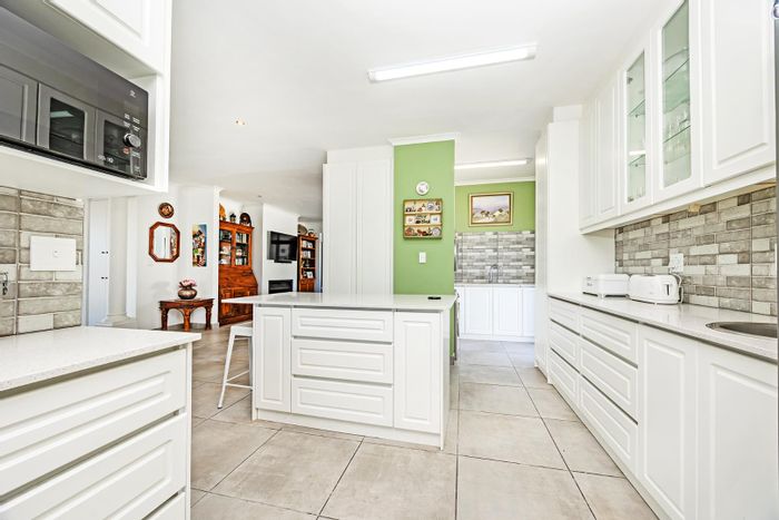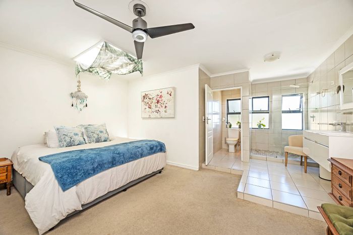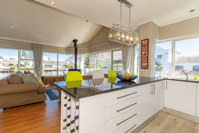 Flexible family home near the marina and Zandvlei Nature Reserve, with separate granny flat, mountain-view deck, glass-enclosed gym and patio with built-in braai. Five bedrooms, three bathrooms, single garage.