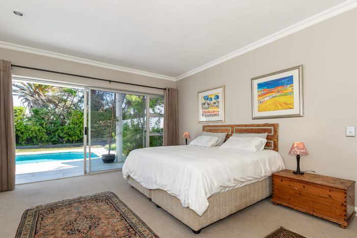 Waterfront retreat in family-friendly Marina da Gama, with uninterrupted water and mountain views, sunlit open-plan living flowing to timber deck and pool, plus self-contained granny flat.