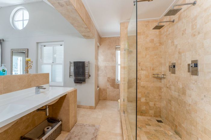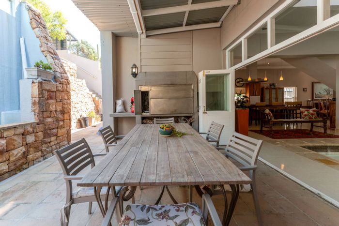 Live the coastal-mountain lifestyle in Hout Bay with sweeping ocean, harbour and mountain views; indoor and outdoor pools, wine cellar, flatlet and double garage, five bedrooms.