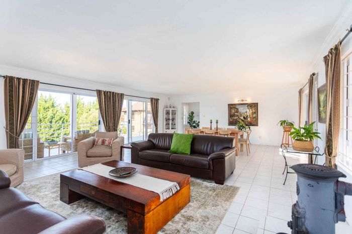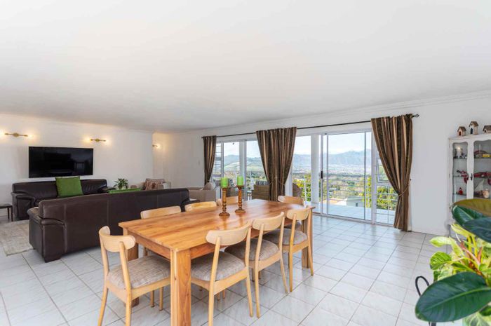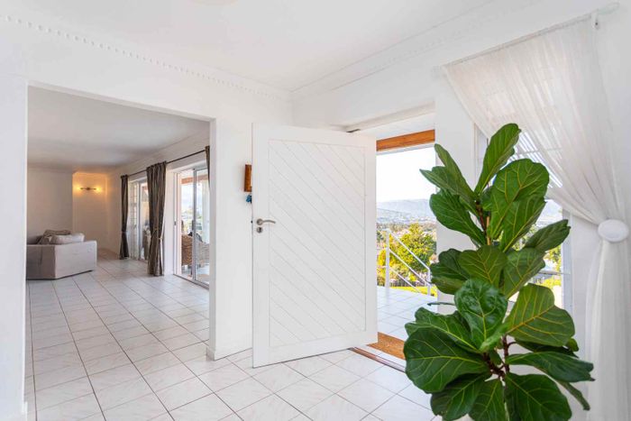 Elevated entertainer's home in Somerset West, set beneath the Helderberg with panoramic ocean views, expansive balcony with built-in braai, sparkling pool and a separate one-bed apartment.