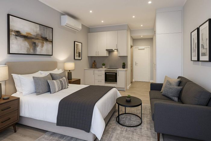 Relaxed retirement living in Plattekloof’s tranquil Northern Suburbs, vibrant community with chef-prepared meals included, modern studio with upmarket finishes, one bathroom and open parking.