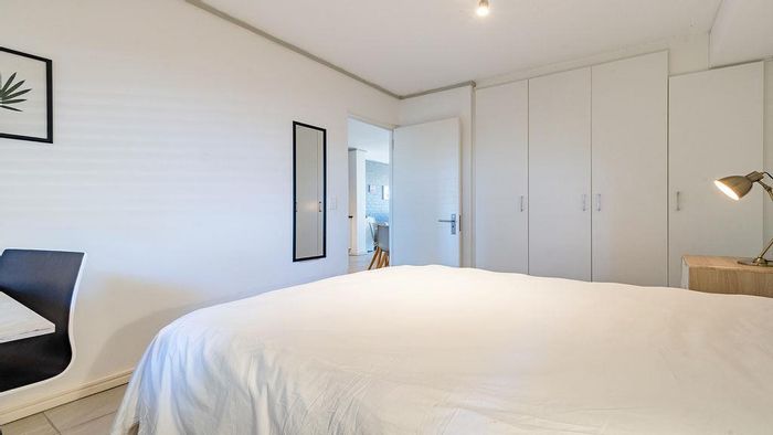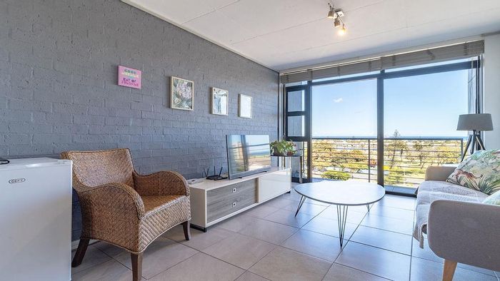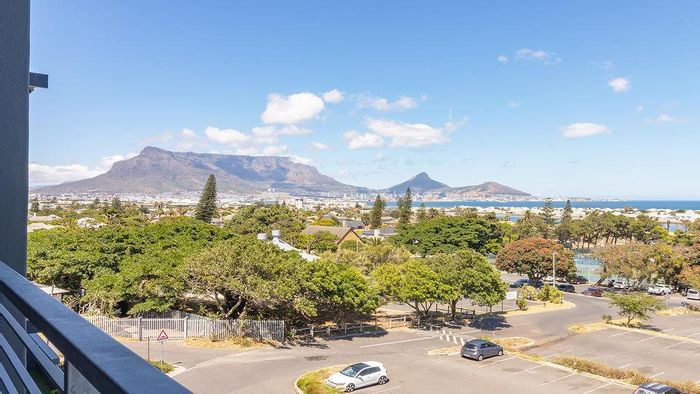 Live coastal urban life in Milnerton minutes from Centre Point shops and restaurants; open-plan apartment with ocean and Table Mountain views from balcony, two beds, two baths, basement parking.