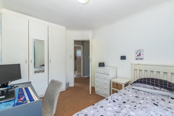 Secure, easy urban living in a well-managed complex with a communal pool and on-site laundry — first-floor two-bedroom, one-bath apartment with a secure parking bay.