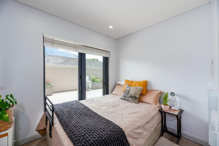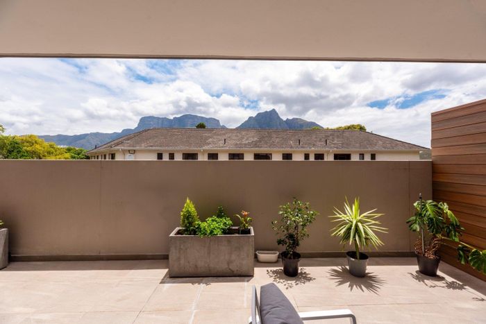 Bright 2-bed, 2-bath apartment near UCT, secure parking, renovated, mountain views, communal rooftop, R3100 levies, represented by RE/MAX.