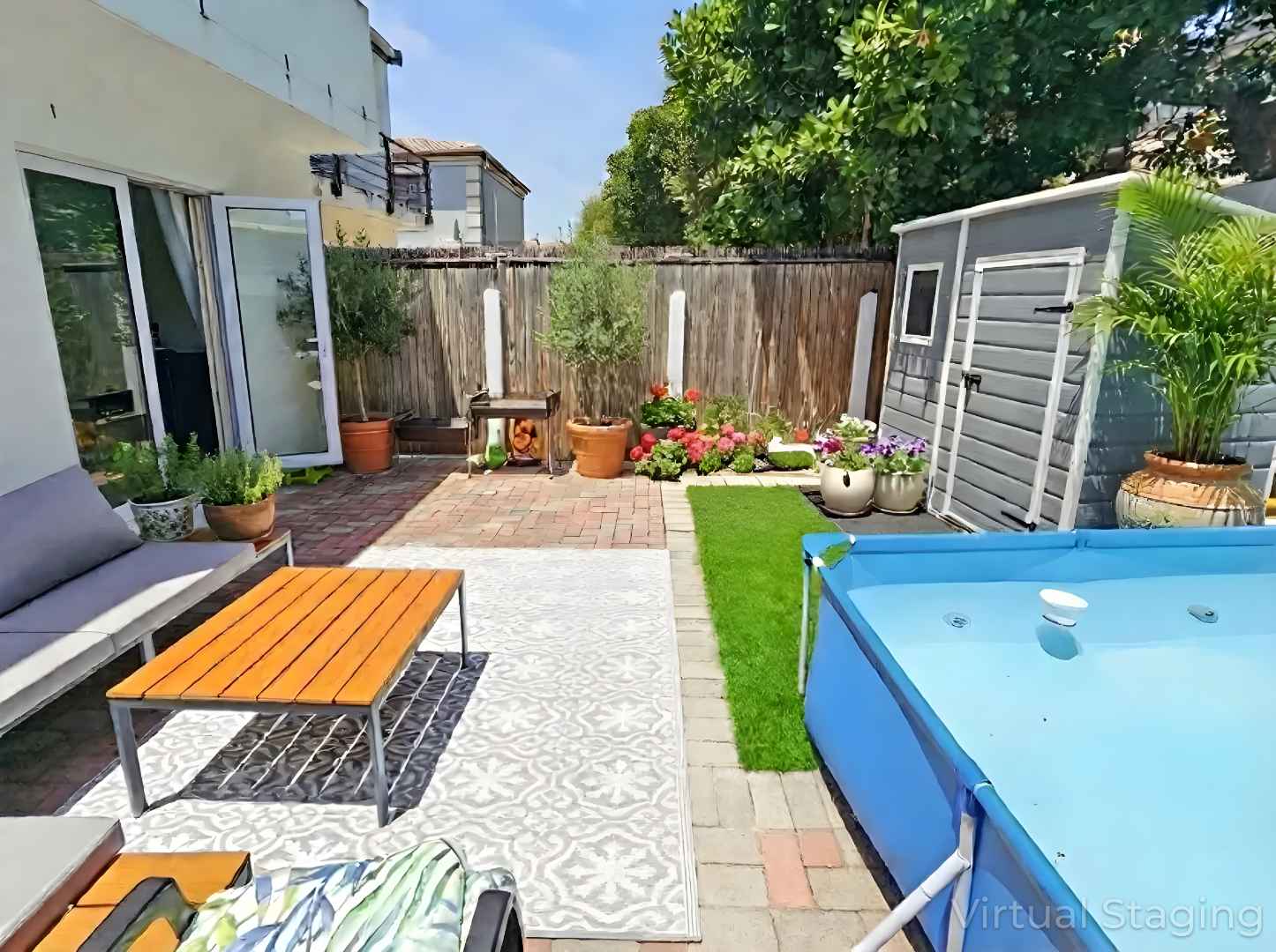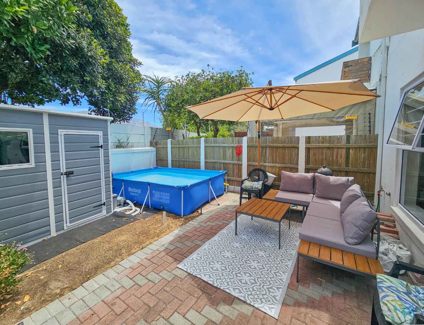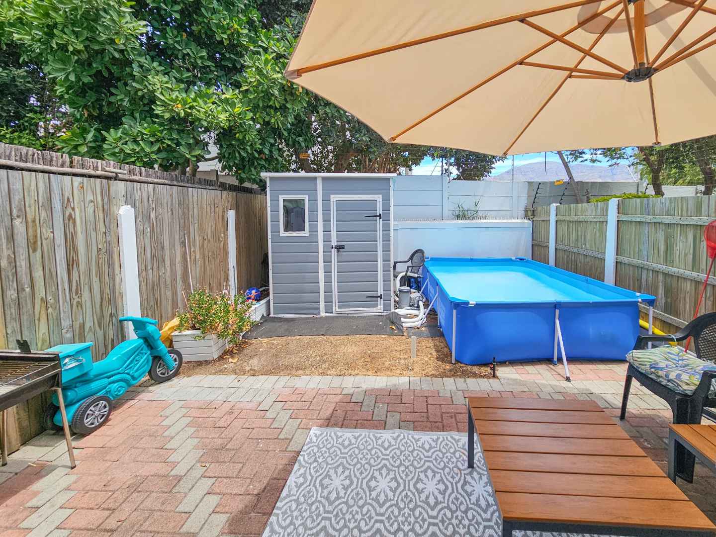 The lovely garden contains an almost new Keter shed and has plenty of space for entertaining! A splash pool could be installed.