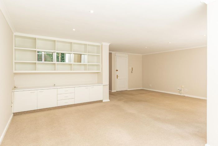 Spacious apartment with private garden, garage, and security in Chelsea Village, close to amenities and schools. Pets allowed.