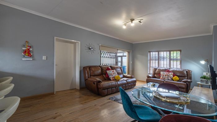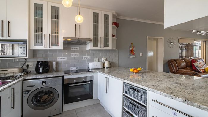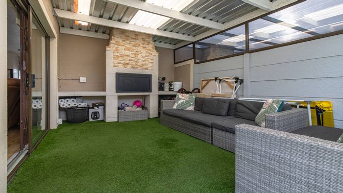 Peaceful neighborhood living a short drive from shops and schools, with airy open-plan living and an outdoor entertainment area with built-in braai — two bedrooms, two bathrooms, single garage.