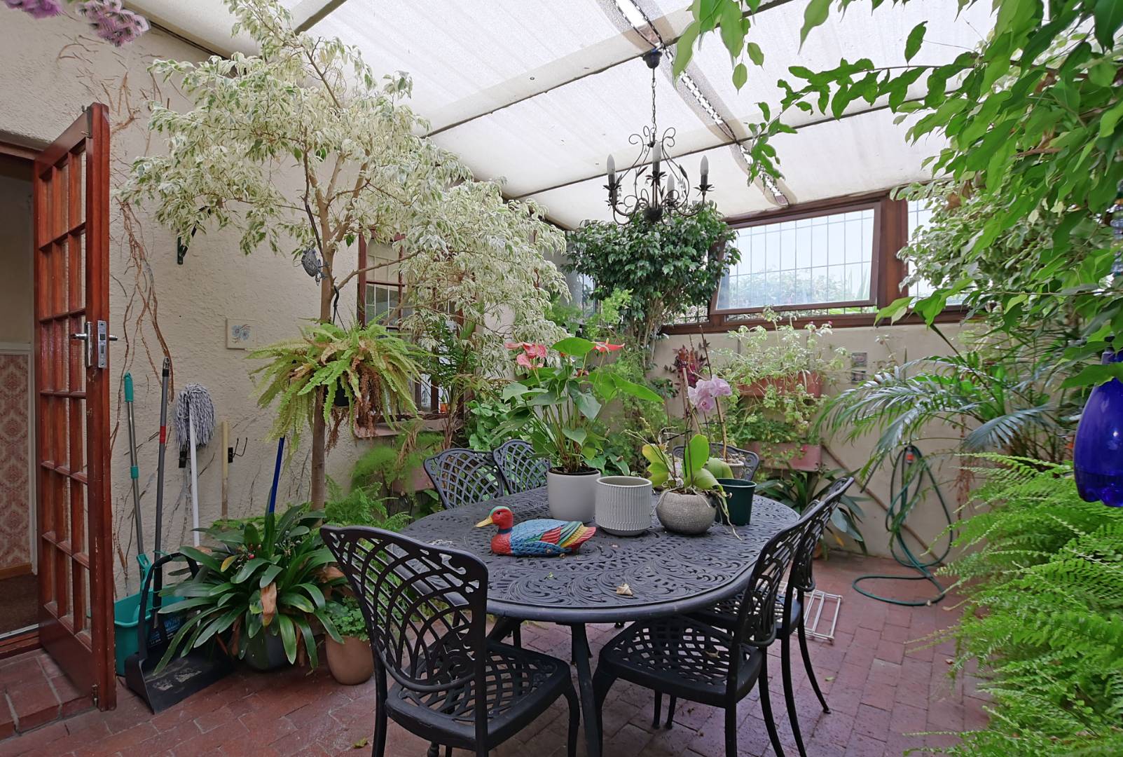 Cosy kitchen leads to a beautiful, lush greenhouse, conservatory for enjoying that lovely morning breakfast.